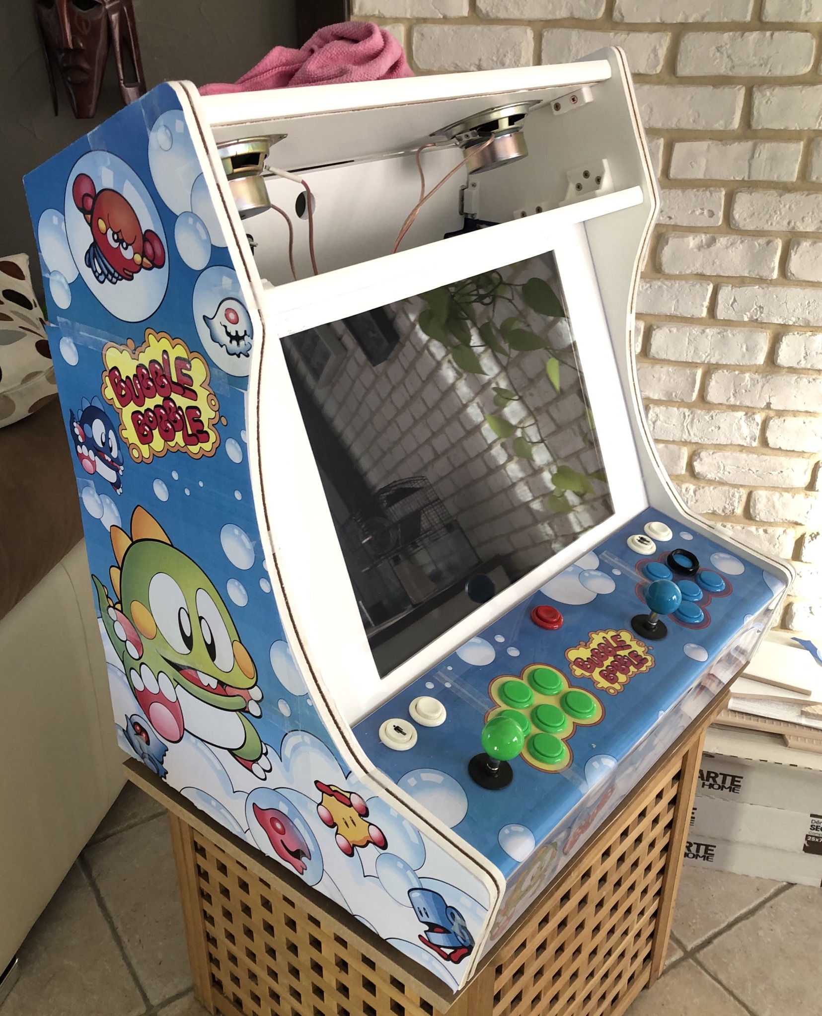 je suis toujours sur ma borne d'arcade version Bubble bobble, j'avais repris il y a un an, j'ai pas mal avancé, j'ai terminé la partie décoration des sides et du panel, il me reste à faire la marquée. Je voulais savoir si il y aurait des bonnes ames pour m'aider à compiler le tout et vérifier que je n'ai pas fait d'erreur.