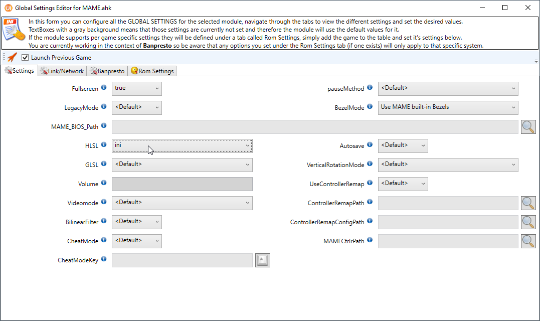 ; Module will set most settings through command line which will override any settings you might have on your MAME ini files. Everything else will be read from