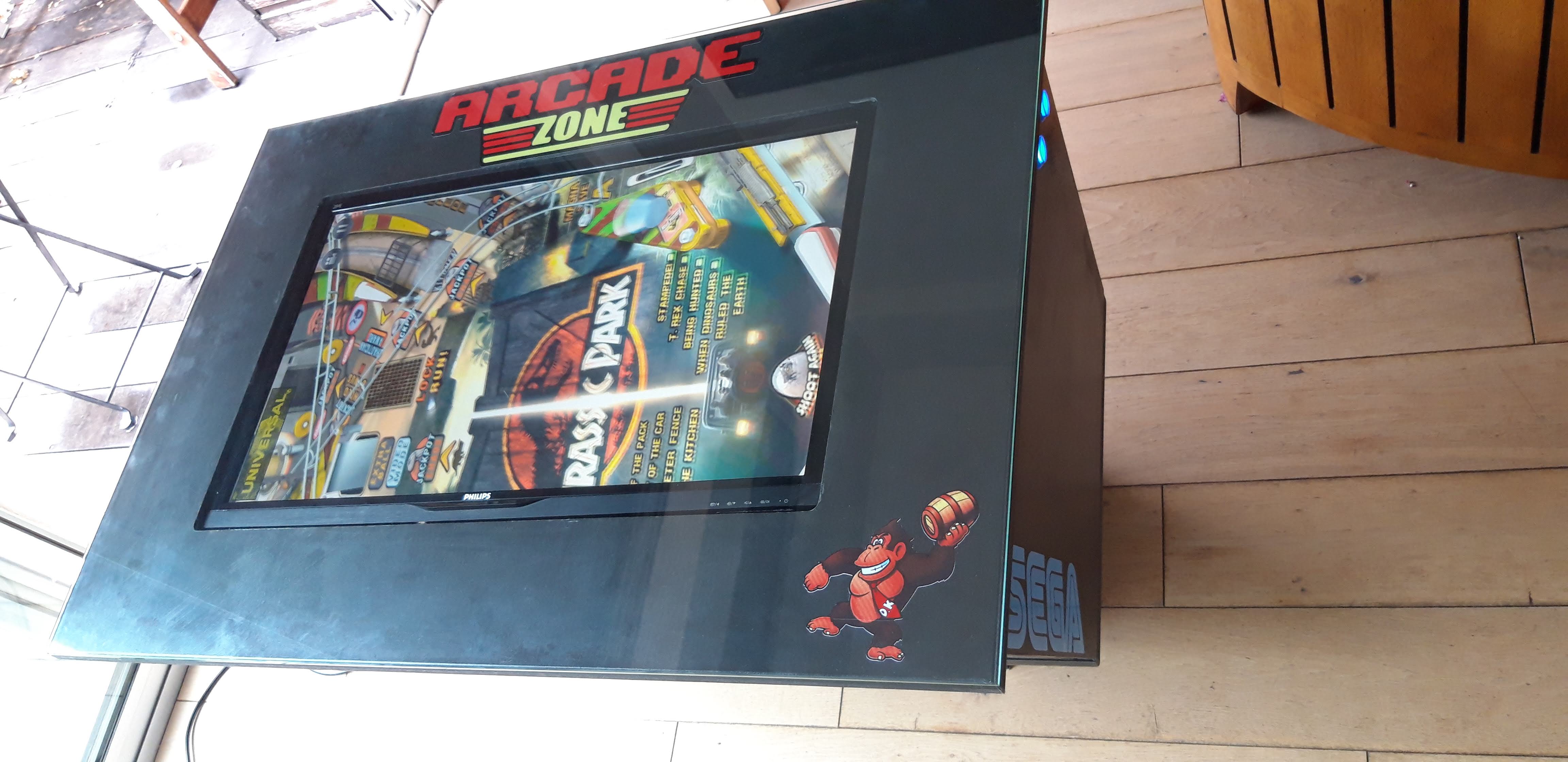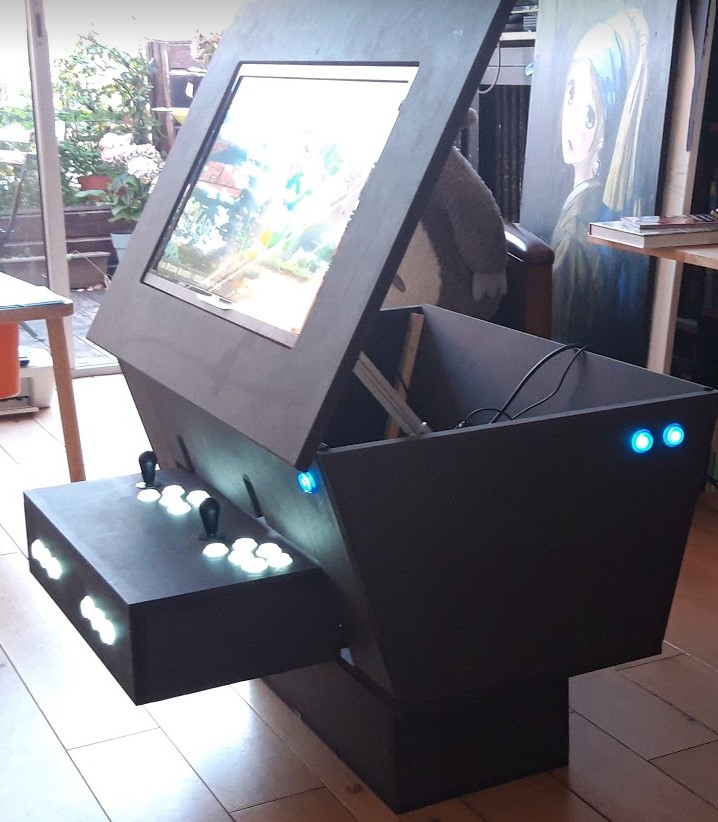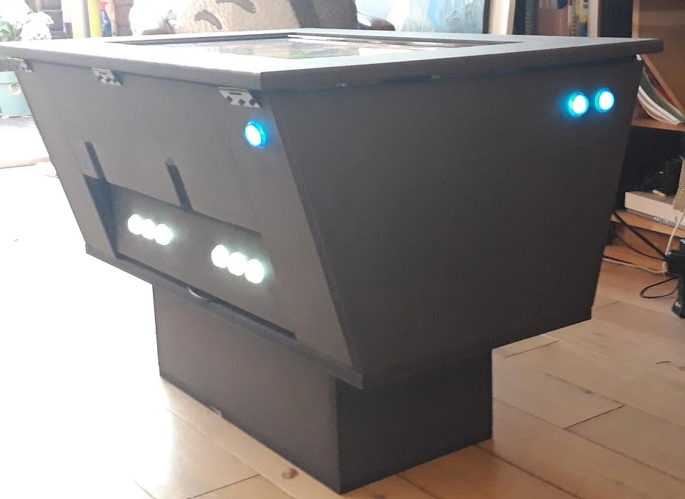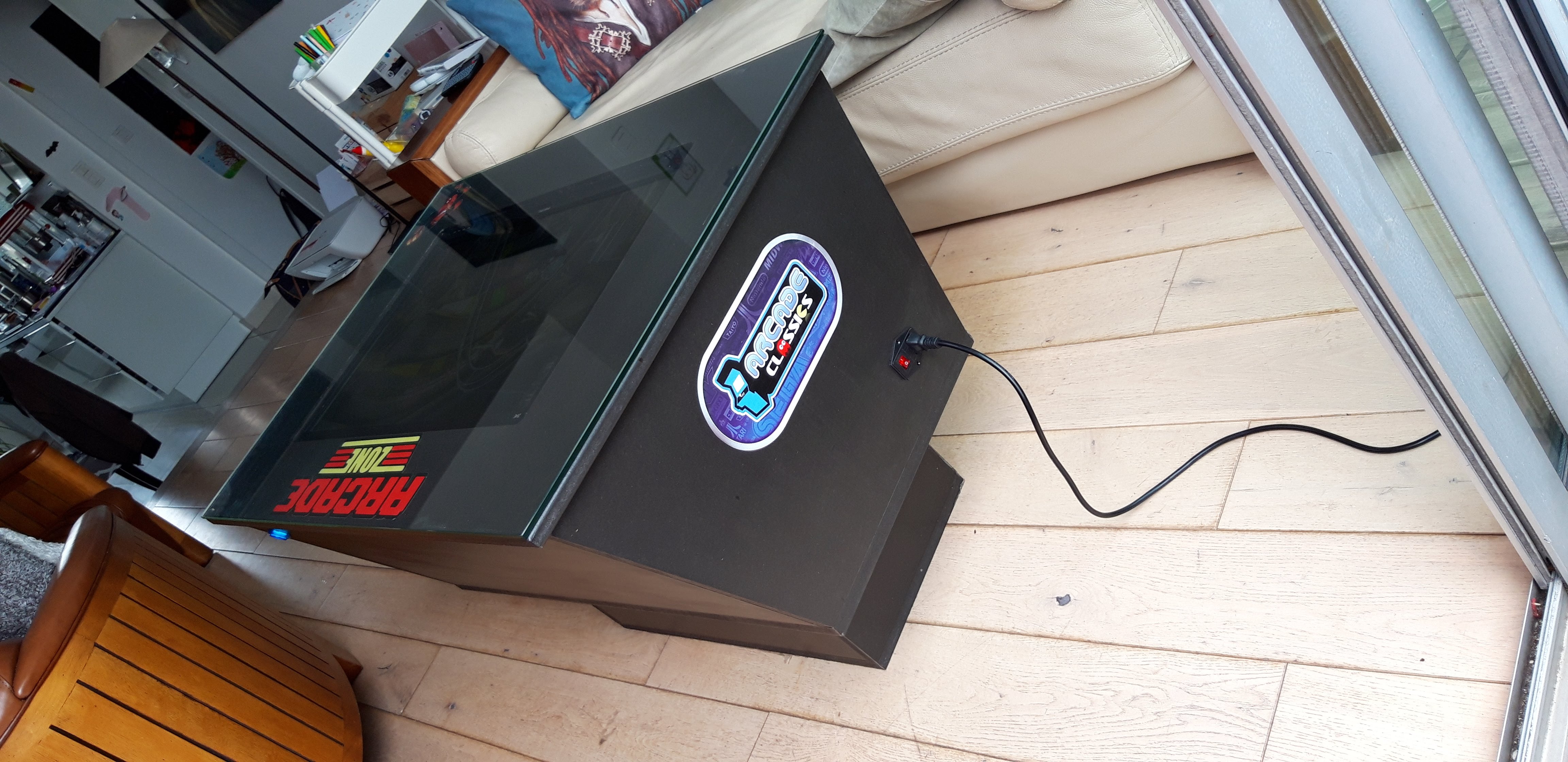 sympas, j'adore les projet comme ca. Petit conseil, tu devrai te faire un plateau supérieur en bois a poser sur la partie écran pour pouvoir utiliser la table sans craintes, j'ai fait un truc du genre avec écran dans un bar protégé par un plexi mais et je regrette car quand quelqu'un pose un bol de cacahuètes ou un verre dessus je peu pas m'empêcher de grincer des dent en pensant au nouvelles rayures...