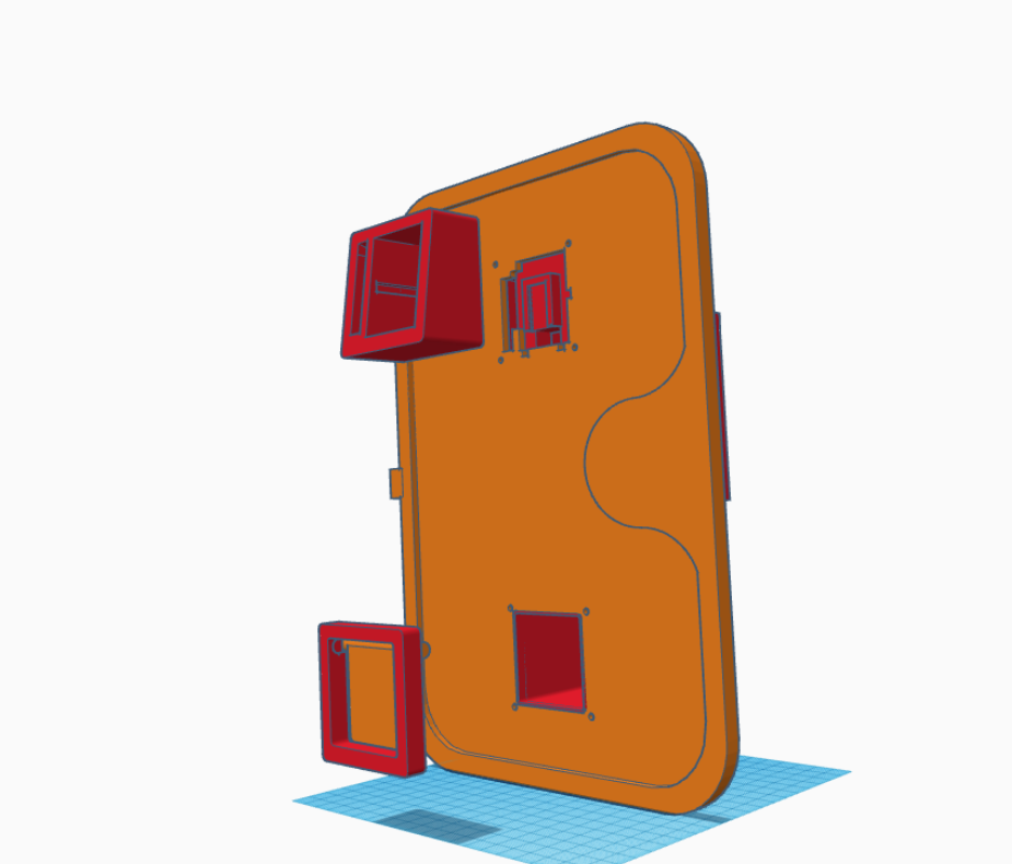 La modélisation fut assez simple, un banal rectangle incliné à 10°, quelques modification pour rendre la forme plus harmonieuse et voilà ! Ne faite pas attention à la position du logo il sera centré sur le mark, il manque aussi les HP et la partie basse va subir une modification. Je dois intégrer une porte avec un petit coin rangement pour les différentes manette sans oublier la petite rallonge USB.