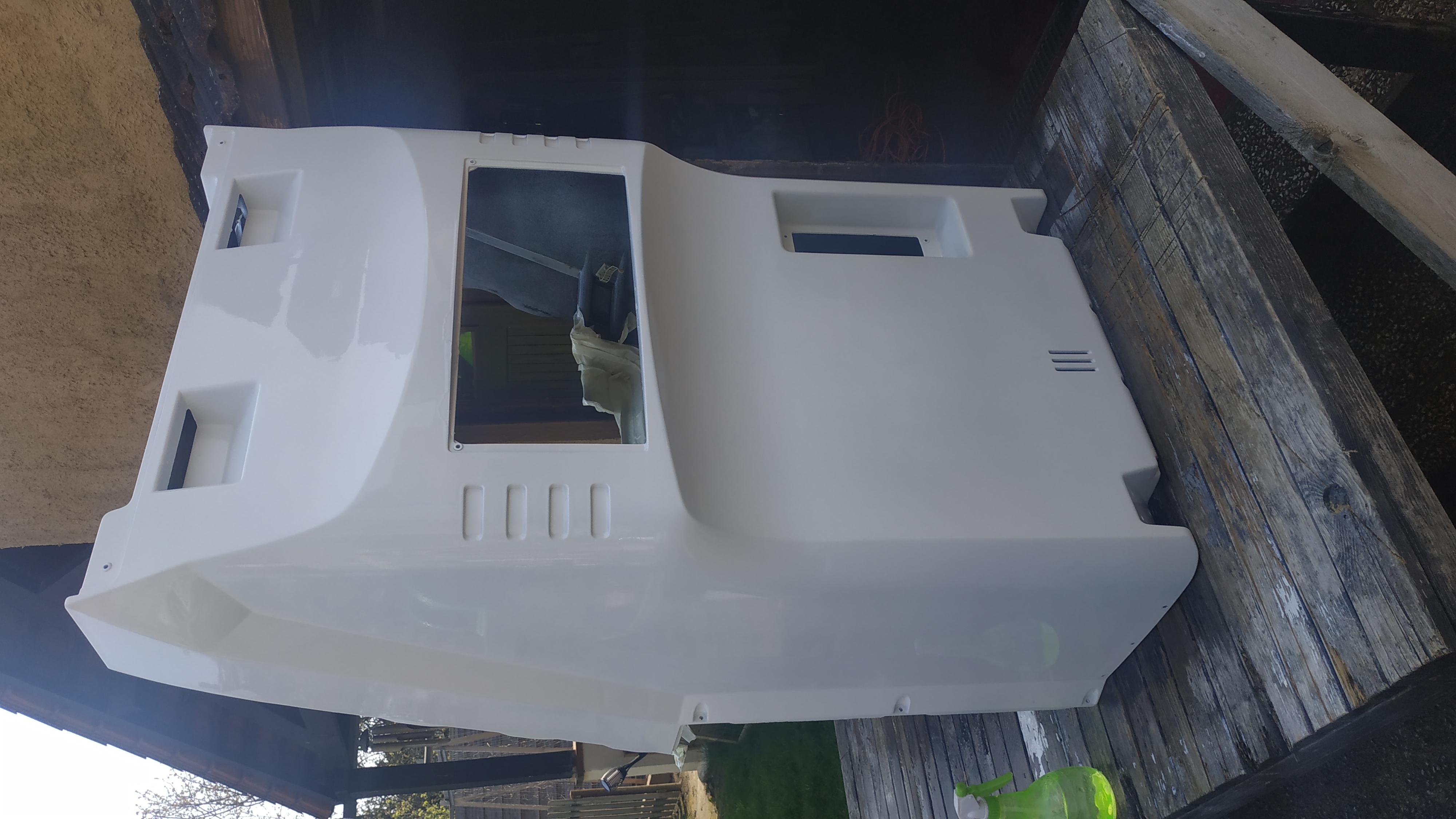 Au vu de ta photo, si tu as des fissures sur le panel ou autour, je te conseil la fibre de verre à l'interieur pour solidifier le tout.