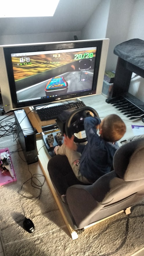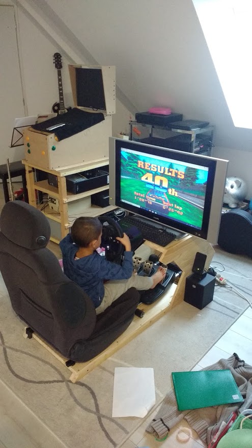J'en avait marre de sortir le volant et son support, de tourner la TV etc. à chaque fois que je voulais jouer. Sans compter que monopoliser la TV familiale c'est s'exposer à des ennuis parfois