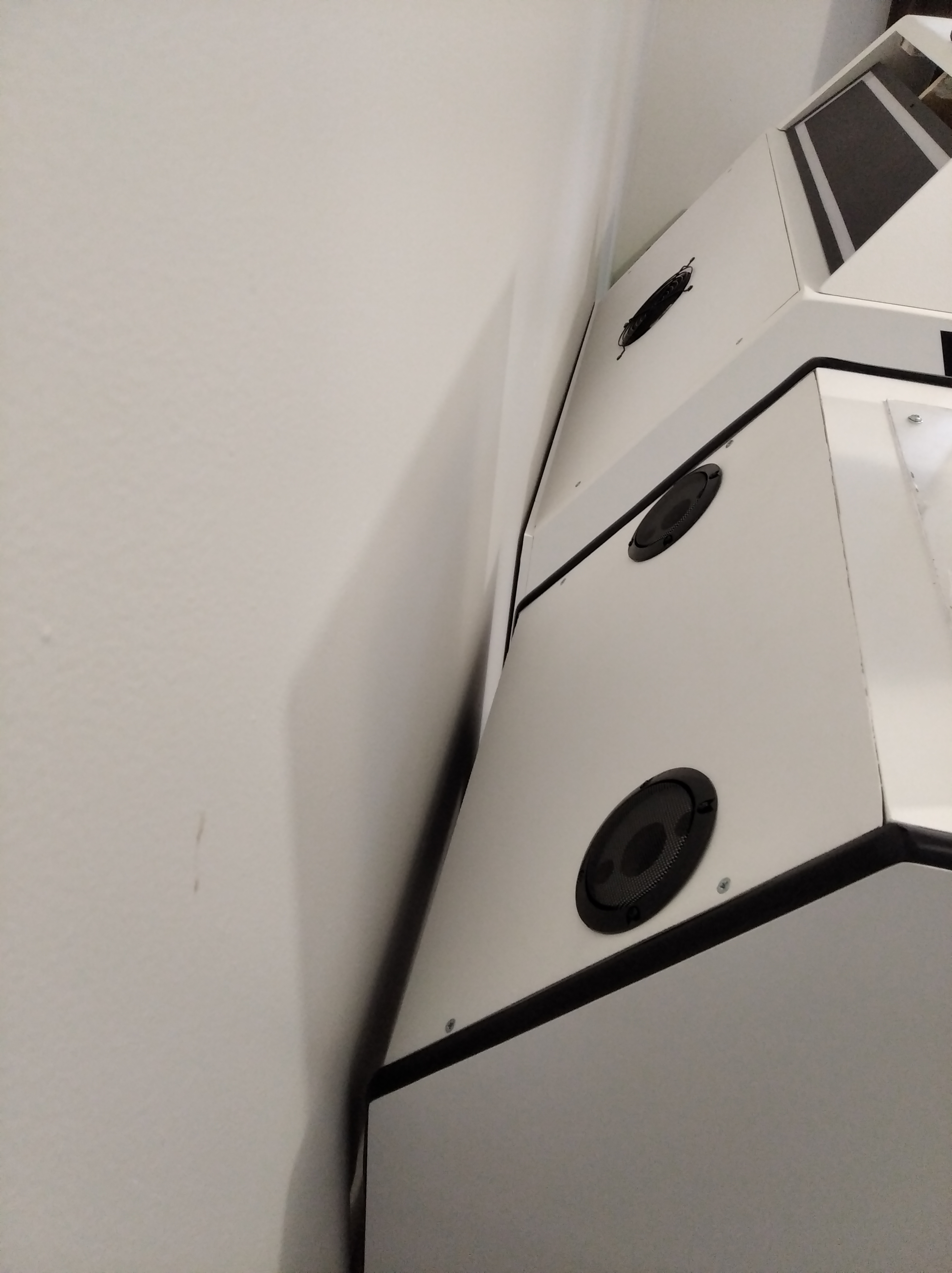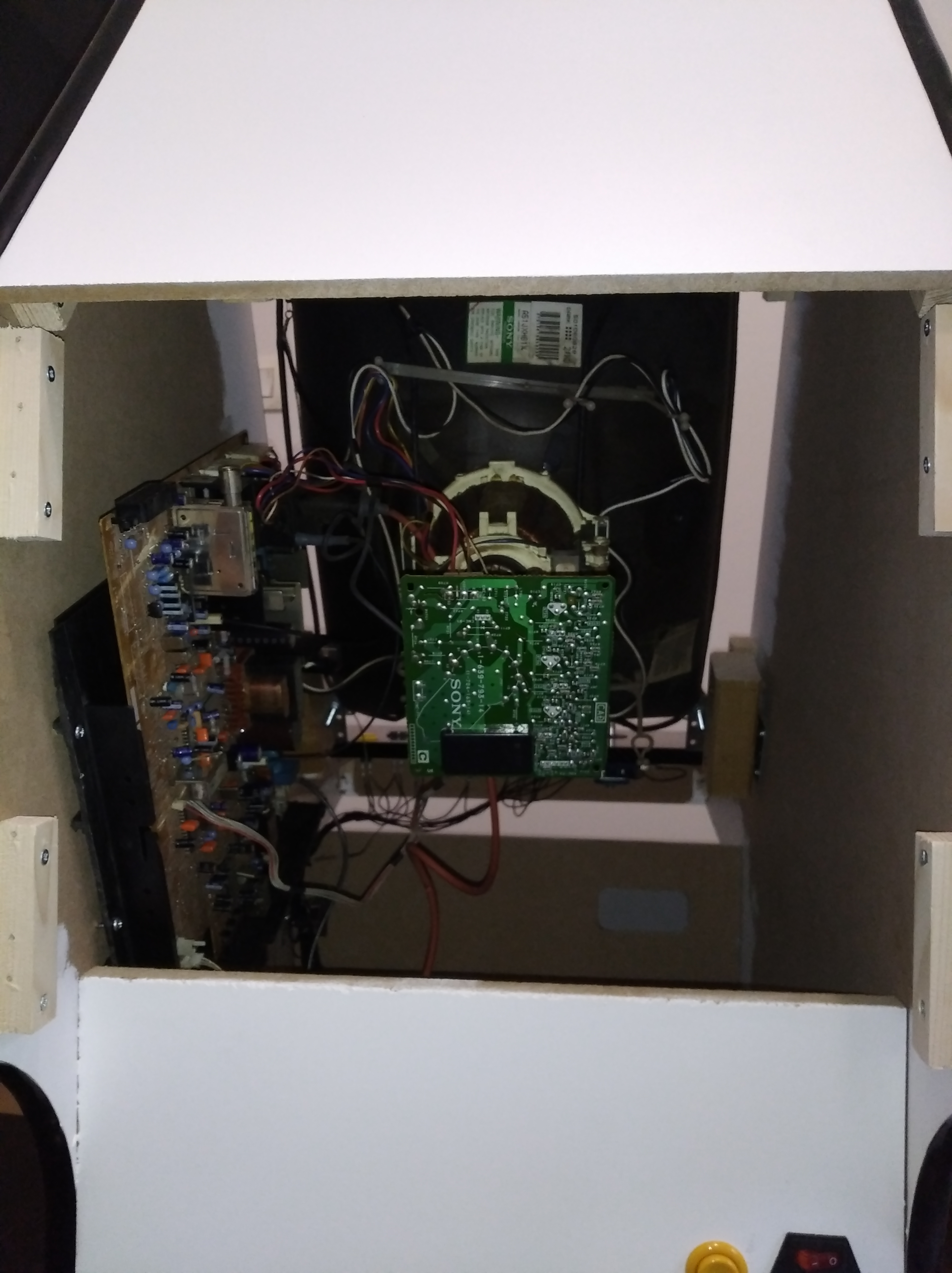 Photo pourrie mais on le voit quand même. Siège style 70's en plastoc, 7 euros chez intermarché. Bizarrement , c'est super confortable ( limite plus qu'un taito de gamecenter jap), ça match le orange NUC et ça fait la taille standard de tabouret jap. J'en ai pris 3 ( 2 autres en noir pour la cyberlead).