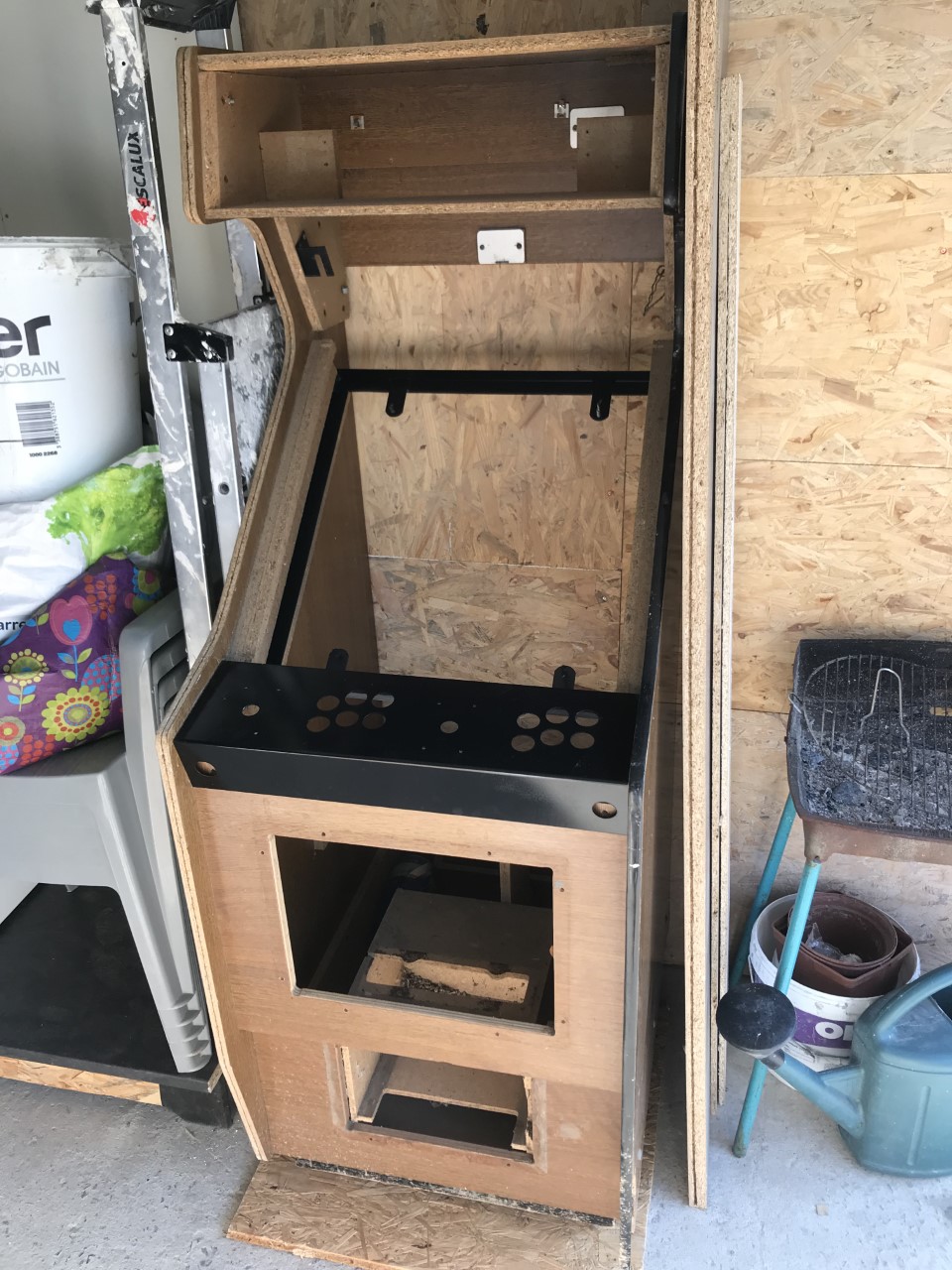 Bonjour à tous, j'ai déjà mis quelques photos de ma borne dans la partie Décoration, mais je viens partager ici l'évolution du WIP. Tout d'abord récupération d'une borne d'arcade sans écran, cassé, mais avec monnayeurs, caisse, et ses portes (sauf arrière). Voilà l'état d'origine de la borne borne_0...