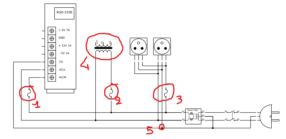 Tiens une nouvelle question, le plan de touki affiche le filtre antibruit dans le sens inverse de celui que je crois comprendre sur la fiche constructeur (line étant le secteur, load le circuit) C'est moi qui capte mal ? Là sur le schéma constructeur, la terre ne passe pas par le filtre mais y'en a ...