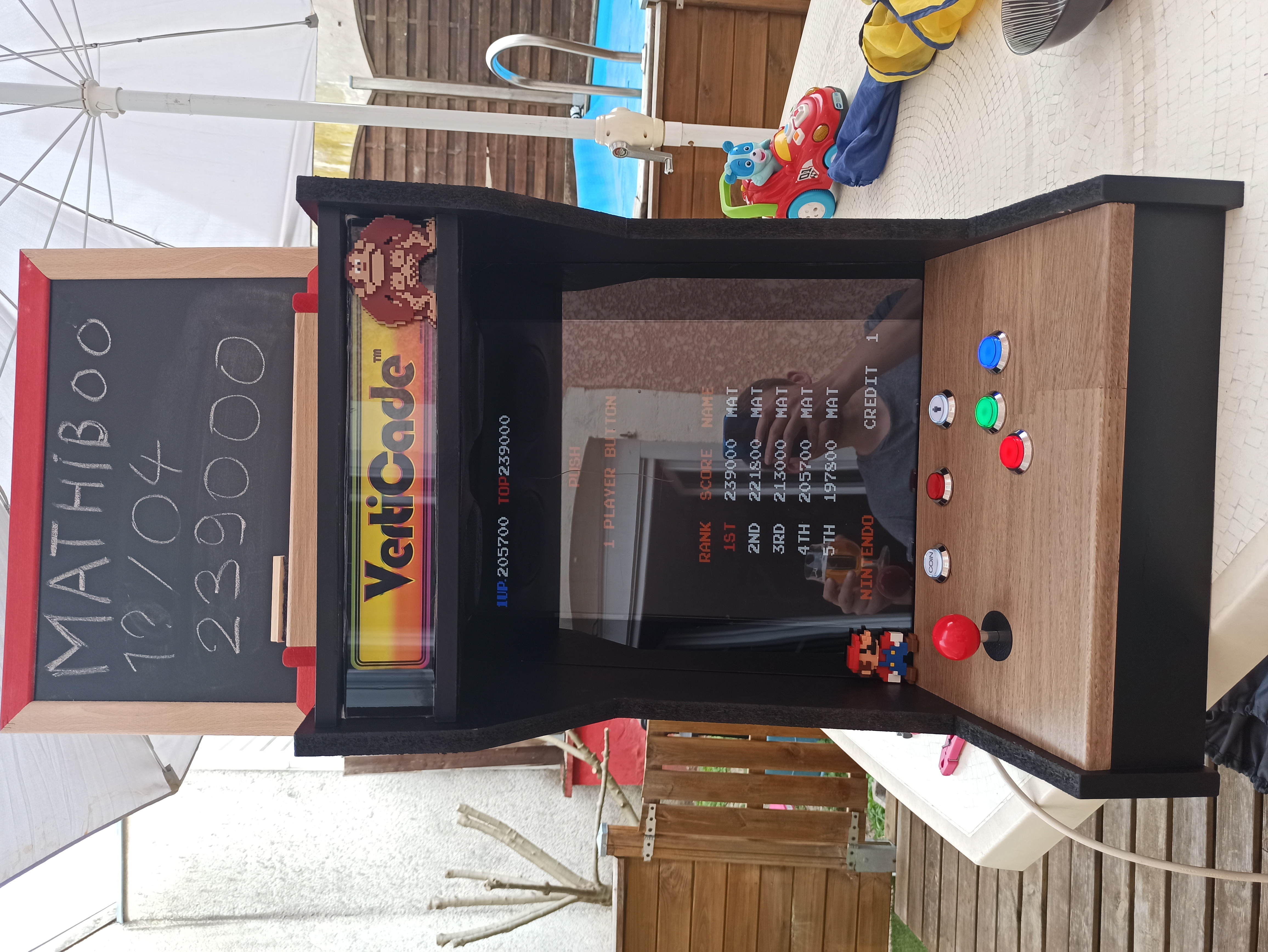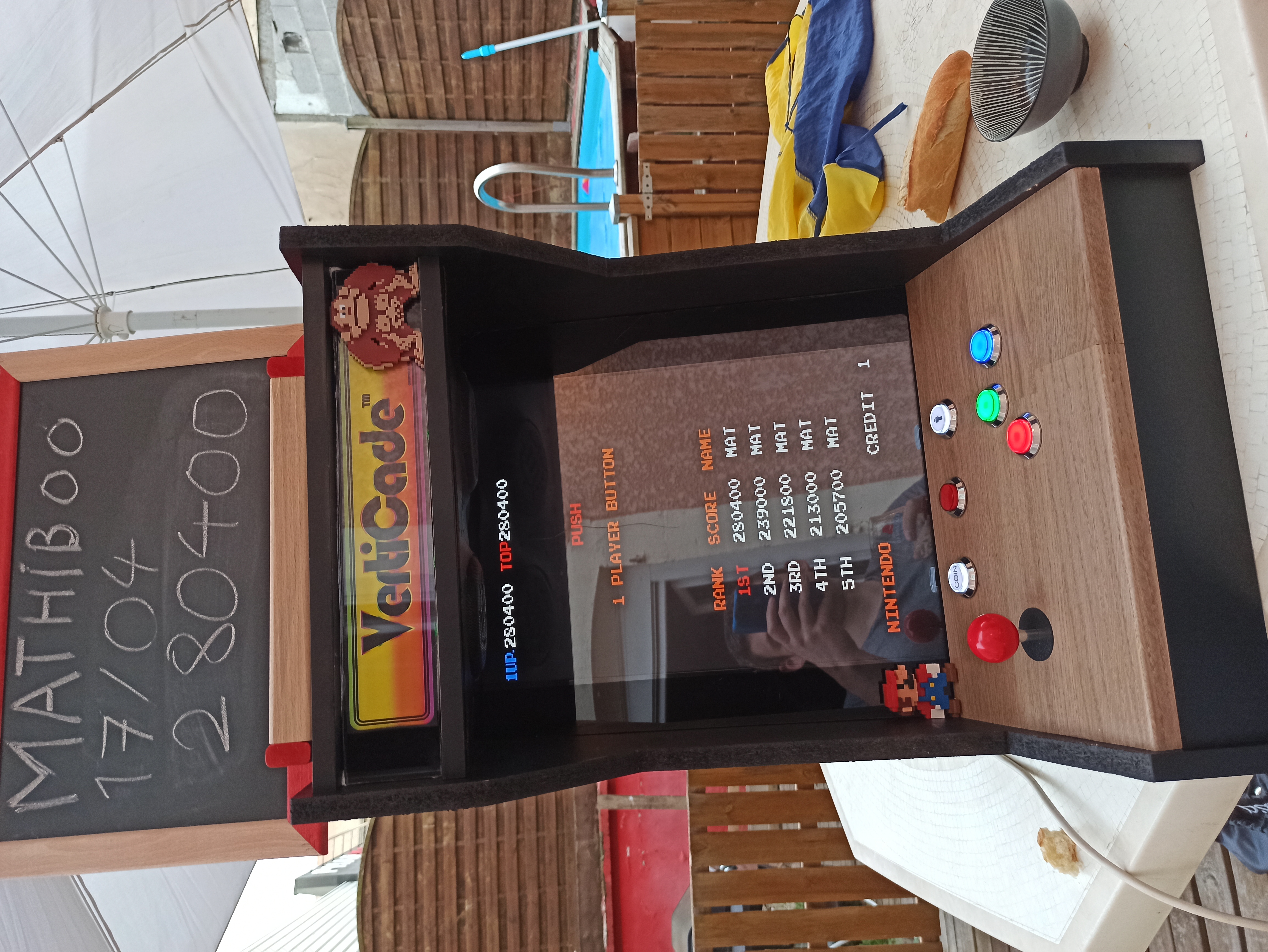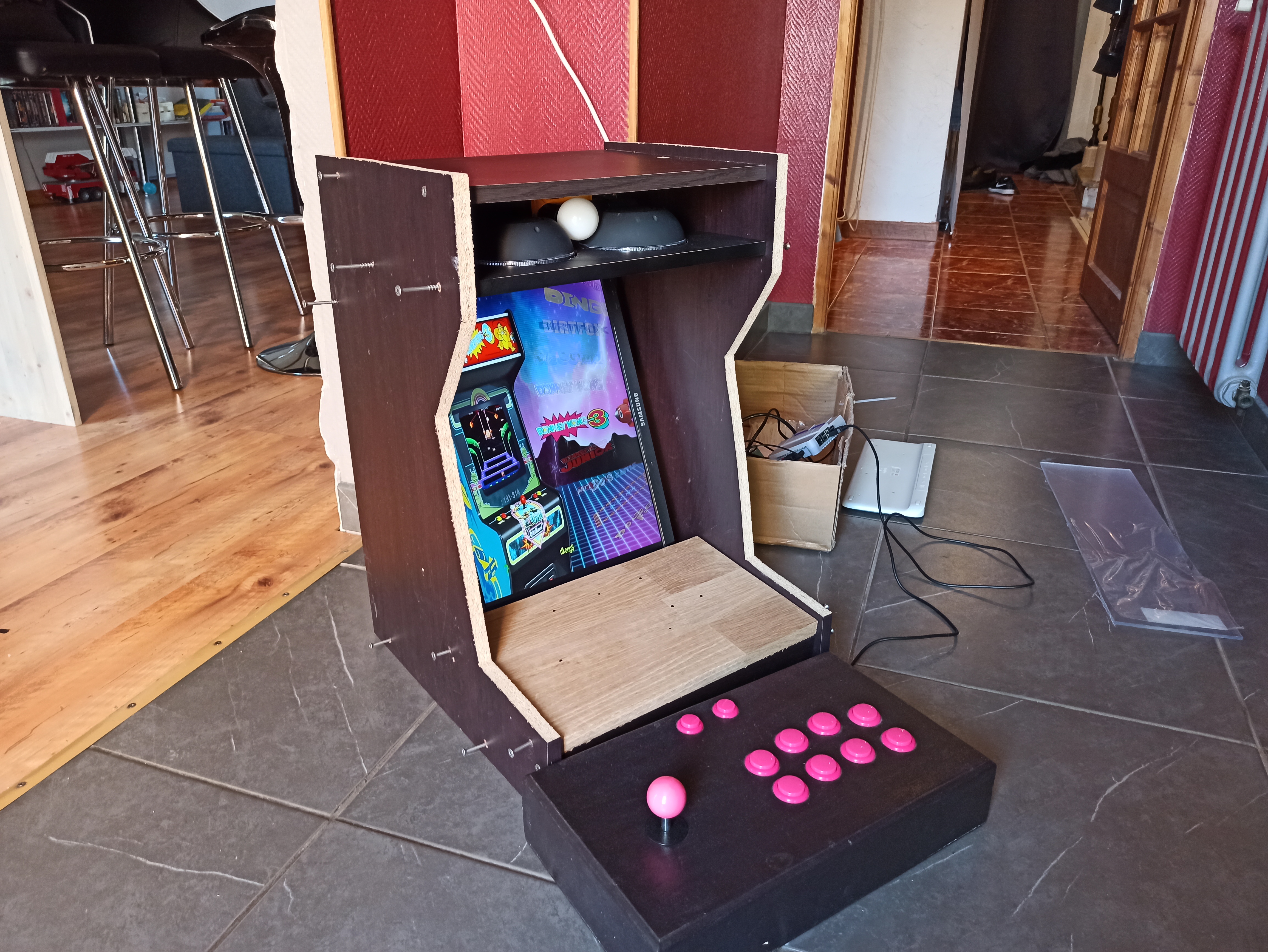 Bon je me suis fabriqué une borne verticale en carton juste pour ce jeu. Mais pas de nouveaux high score pour moi aujourd'hui car l'ecran a rendu l'ame.