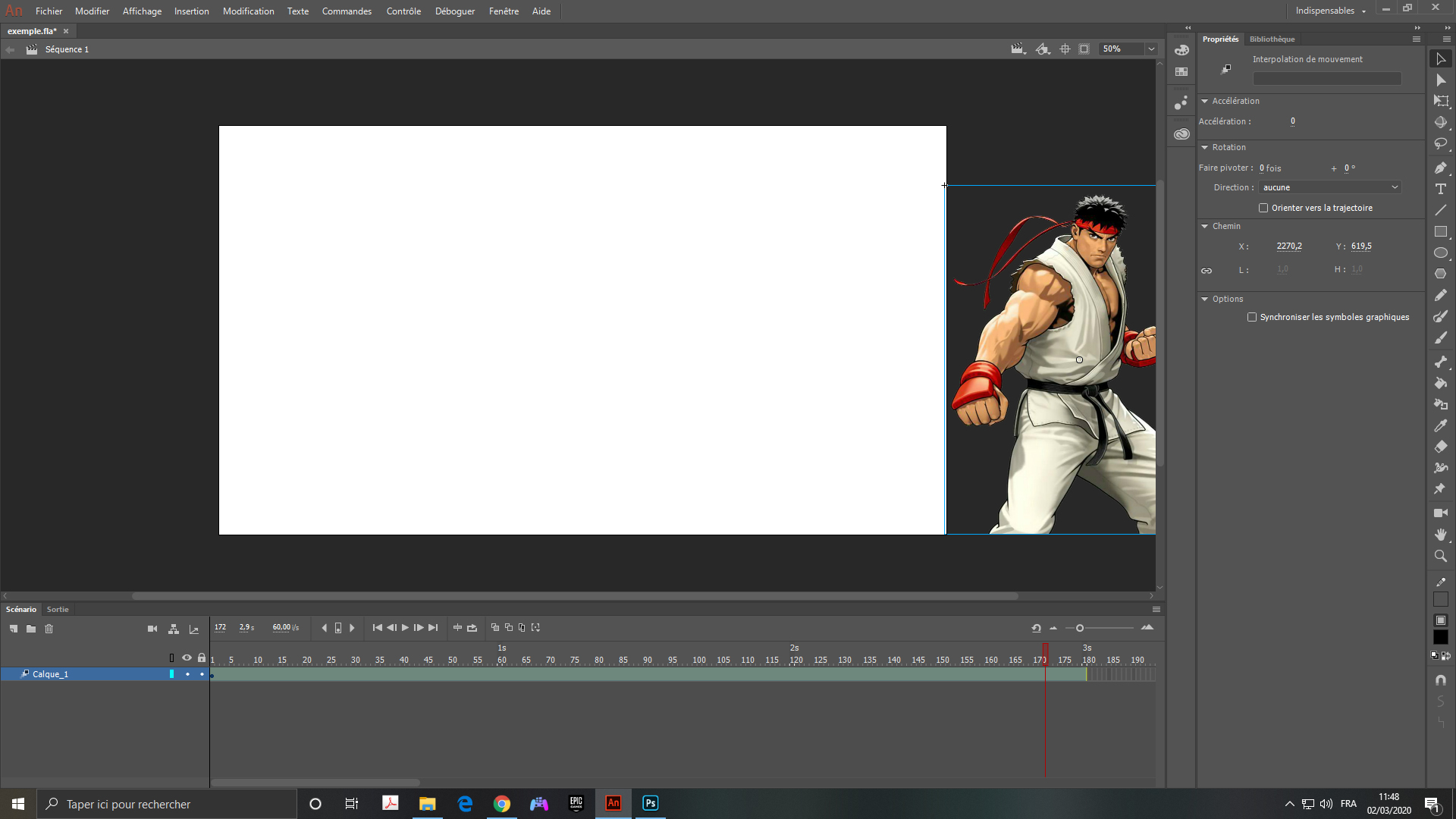 -Faites un clic droit sur votre RYU et choisir interpolation de mouvement, (a la 1ere utilisation d'Animate ça vous lance une bulle d'avertissement pour convertir l'image en symbole "faite oui pour toujours"