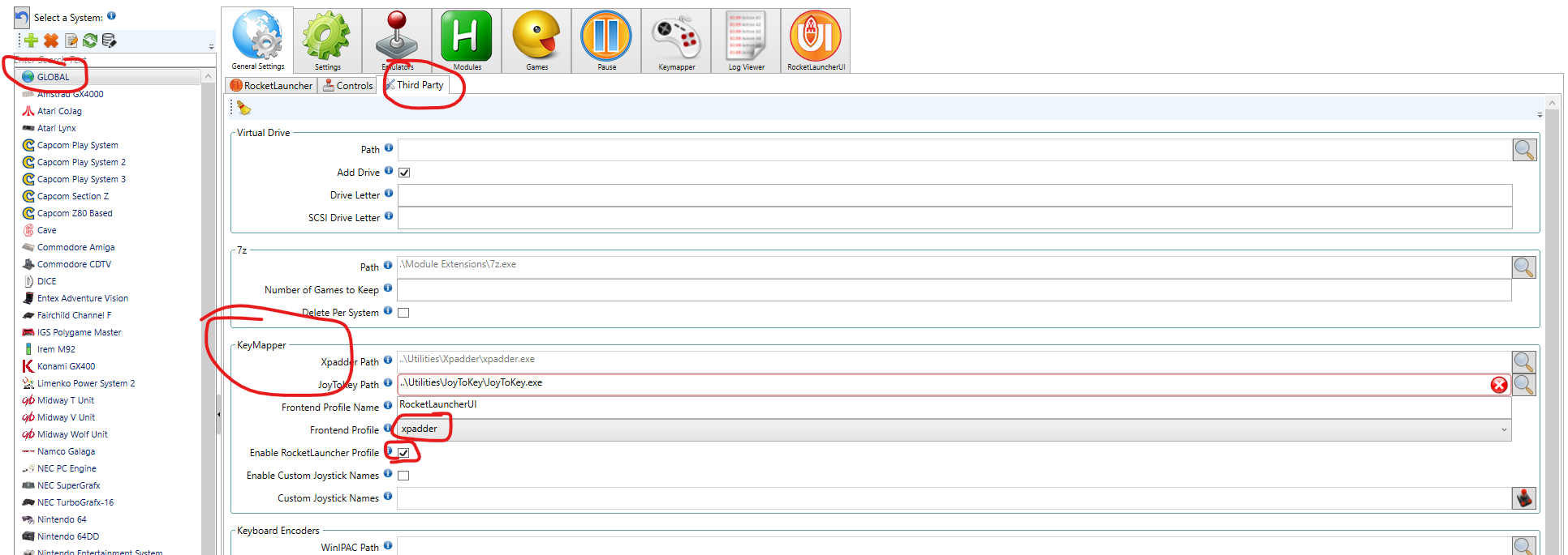 Désactiver Xpadder dans RLUI, ensuite, juste avoir un autoprofil avec xpadder lié à hyperspin.exe qui contiendra HBGD, Entrée et ESC