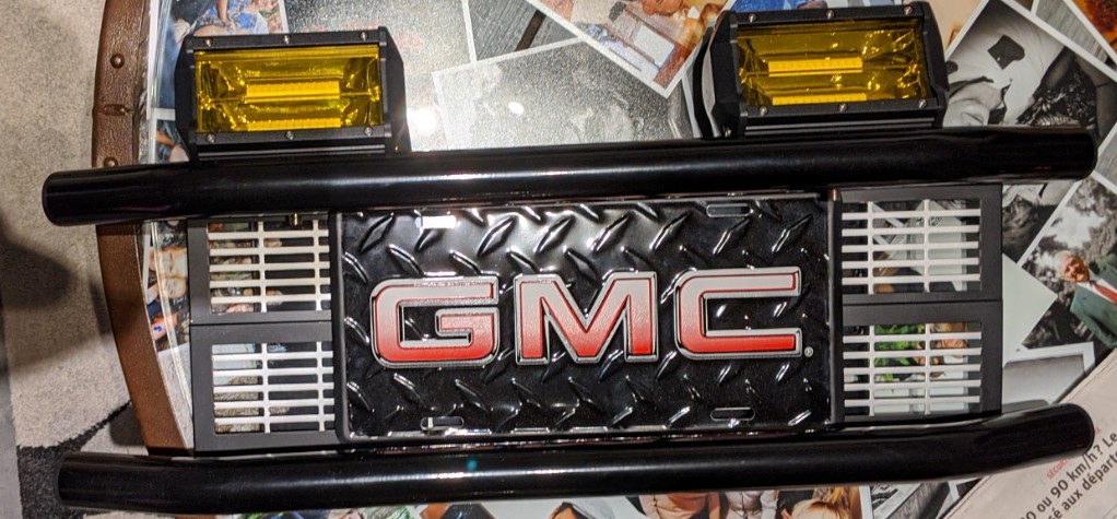 Ci joint une photo, j'ai ajouté le pare-buffle au niveau bas ainsi que le stickers en relief GMC pour rappeler le van.