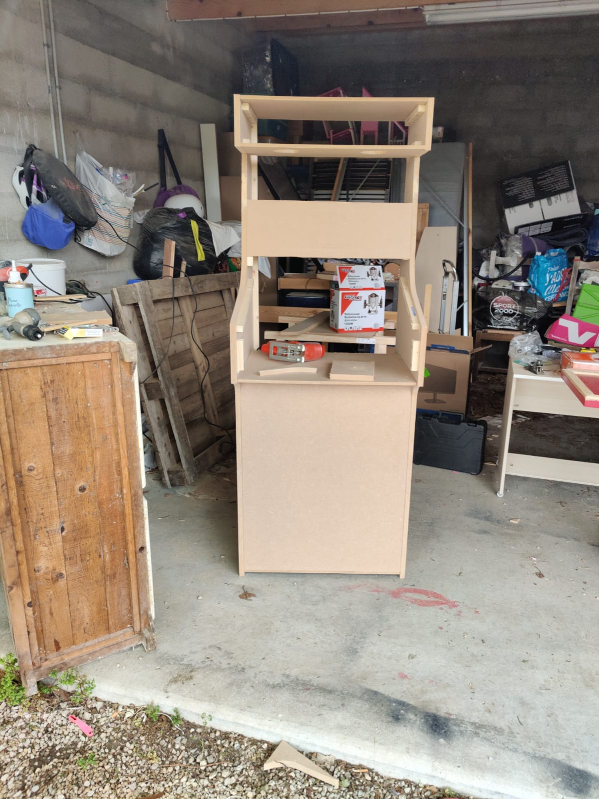 Ah oui la traverse au dessus du panel ce était pour la fixation de l ecran...j' ai fait une bêtise y avait une offre sur un 27pouces et selon leur descriptif il devait faire moins de 60 (largeur de ma borne en interne). Malheureusement il fait 61...donc lors du démontage je vais regarder ce que je peux faire pour l ecran... Car je voudrait bien qu il soit a l intérieur...
