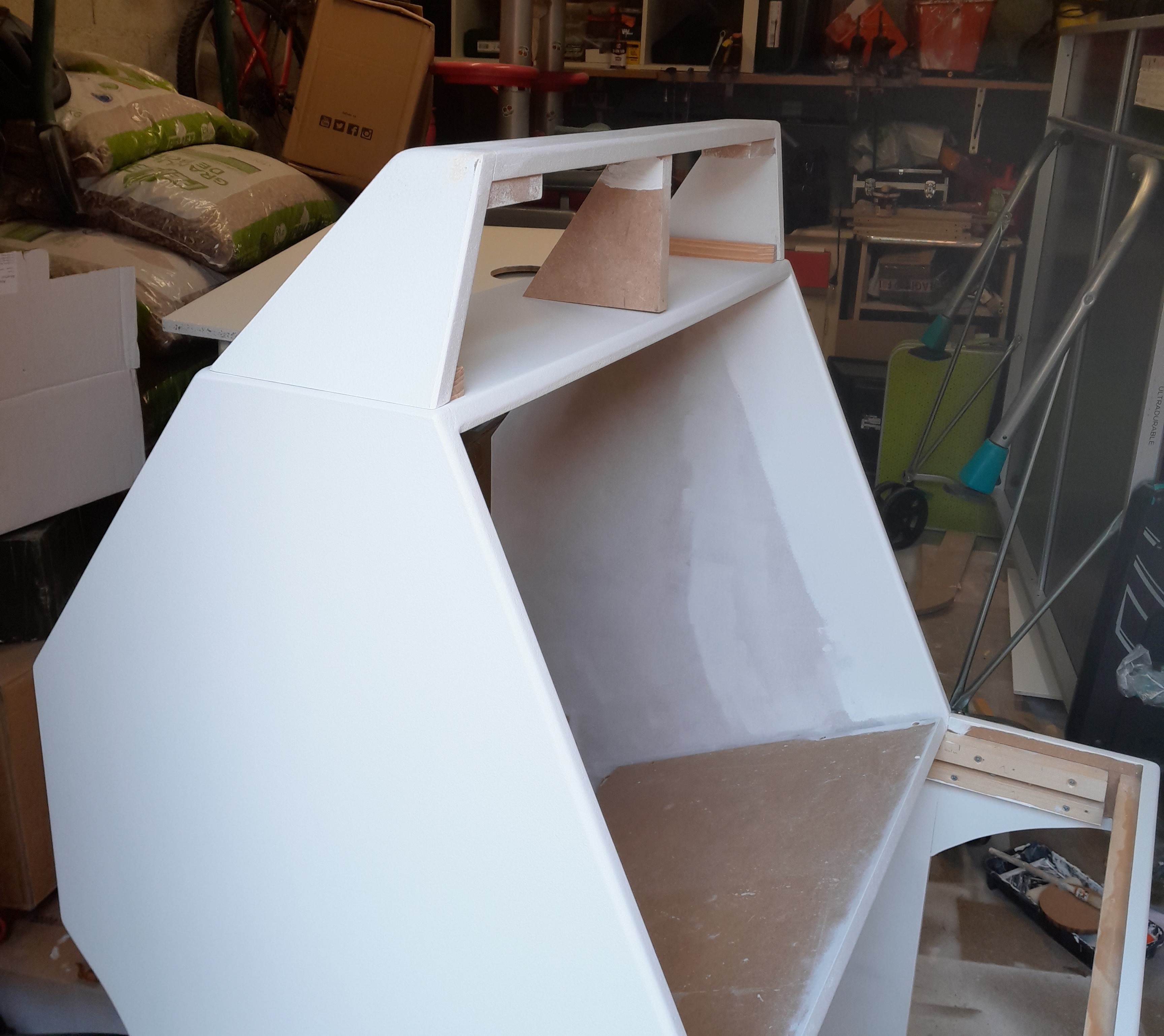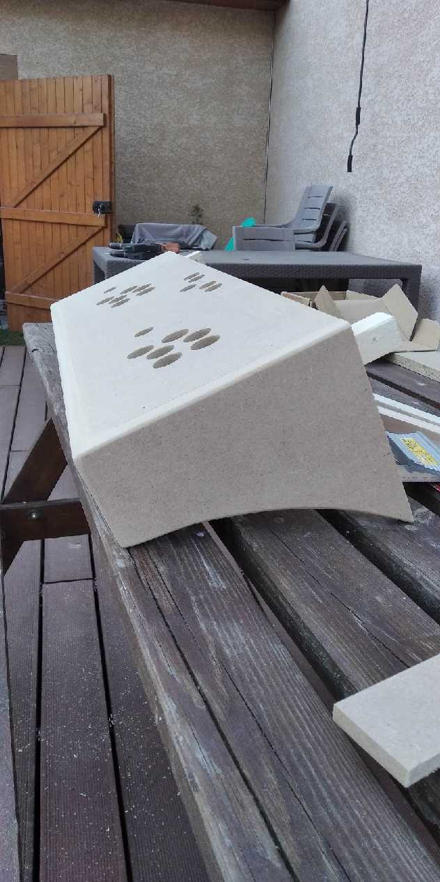 ça y est j'ai plus de bois , j'ai commencé le topper et rajouté des couches de peinture il me manque la partie arrière du topper et la partie sous le panel, il me manque également 2 charnières la partie avant basse s'ouvrira.
