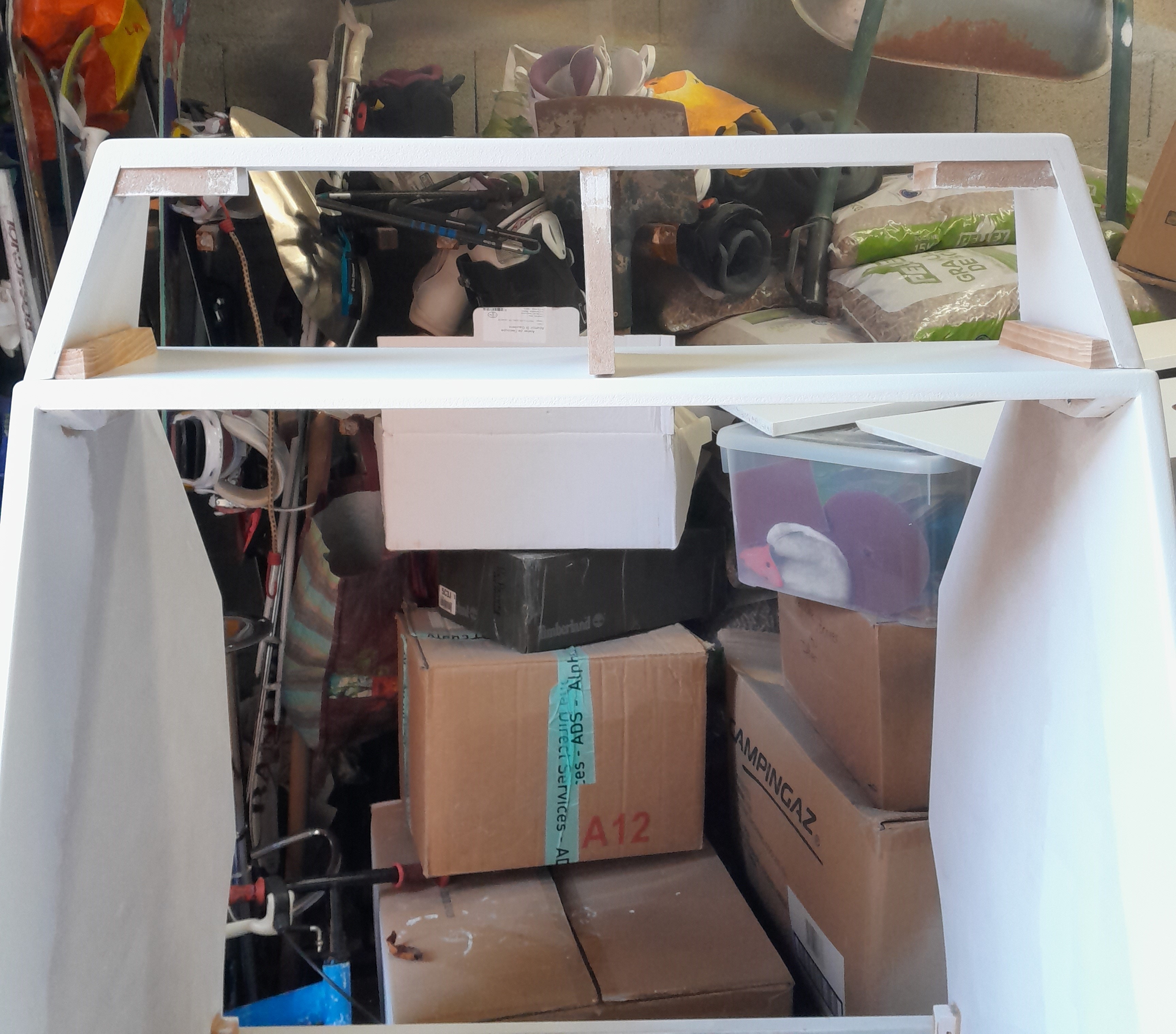 oui c'était prévu, pas peur que la planche cède mais surtout qu'elle se courbe avec le poids. Là ça devrait pas bouger (les tasseaux sur les sides sont vissés collés+ 2 morceaux de lambourdes).