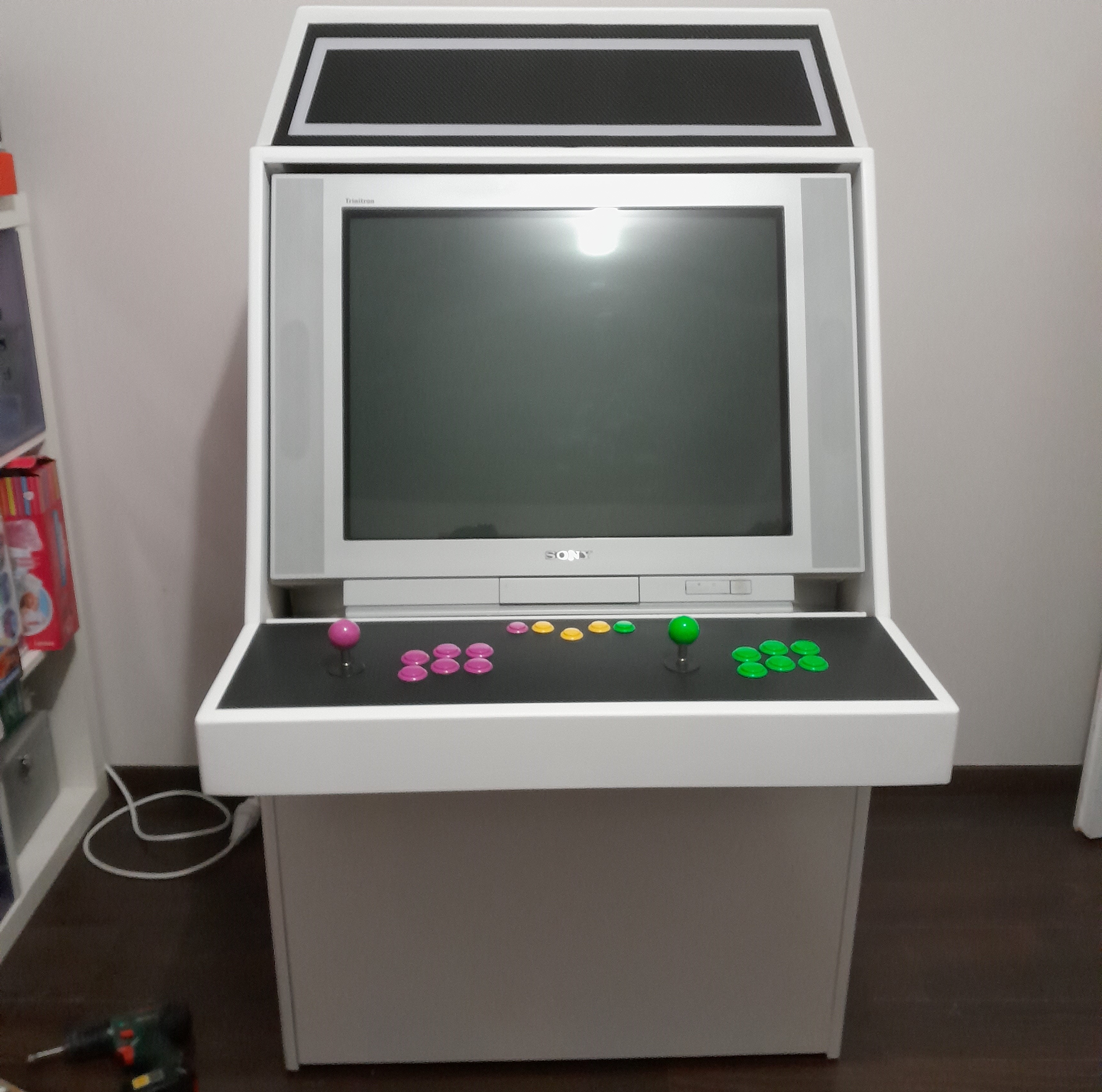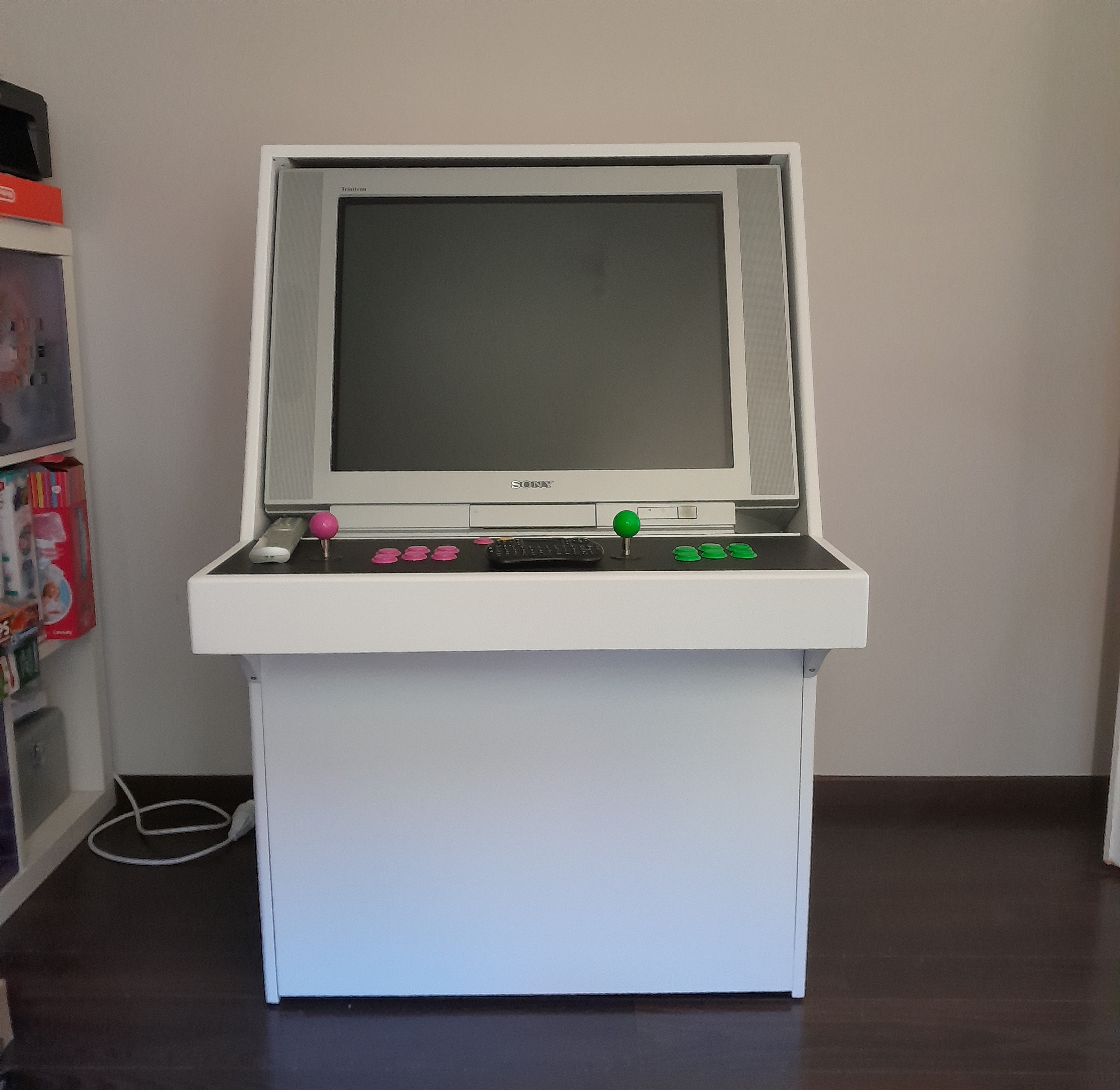 je voyais pas l’intérêt de démonter l'écran, c'est plus large mais je suis pas à 3 cm prêt. J'ai pas vu beaucoup de wip de sitdown avec écran crt alors c'était l'occasion. J'étais plutôt borne européenne debout mais j'avoue qu'il y a vraiment un très bon confort lors de sessions longues En attendant de trouver une candy ça fait vraiment bien le taf avec CRT, d’ailleurs on en trouve aussi dans les candy quand on a que ça sous la main.