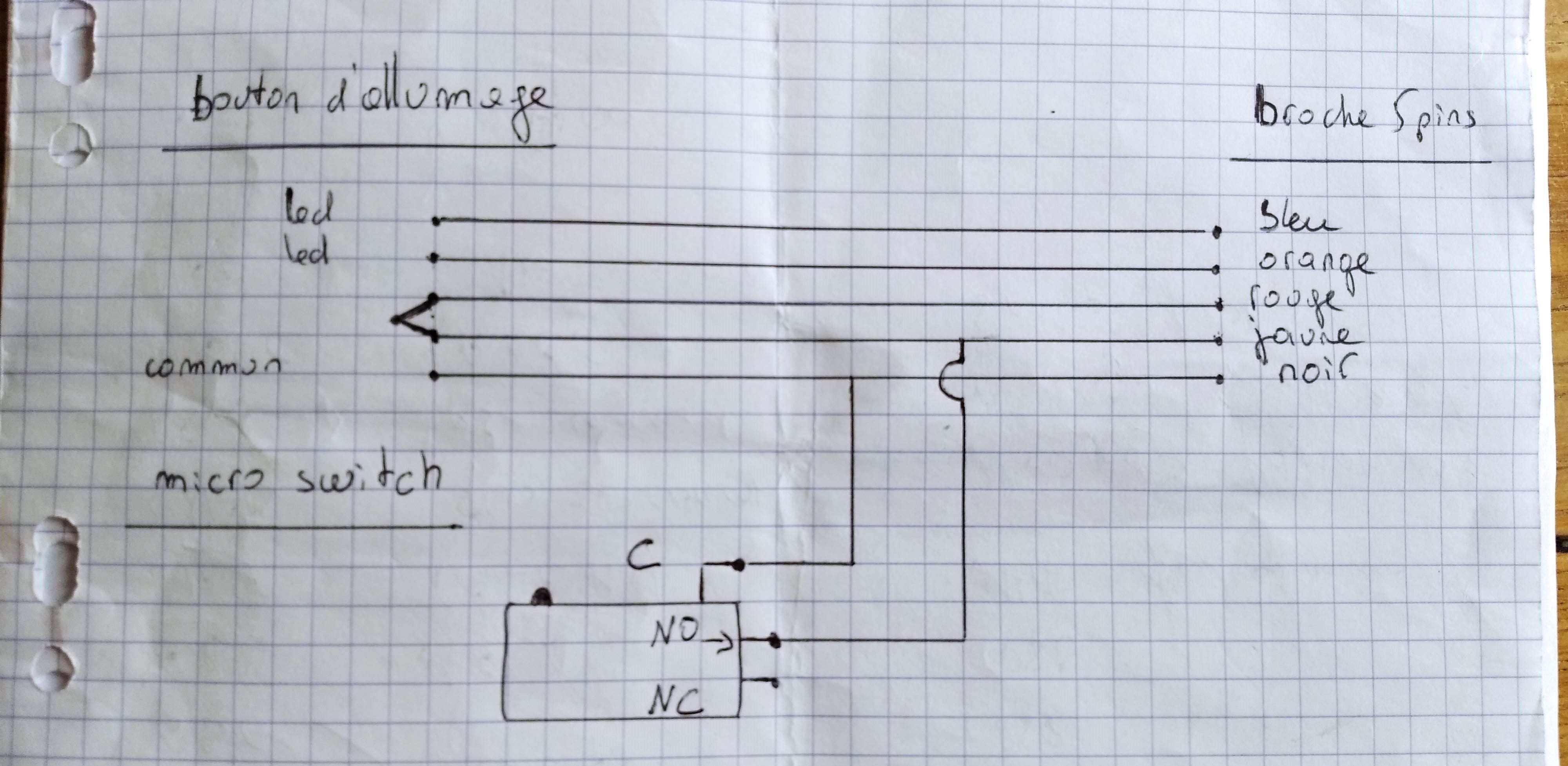 J'ai branché un bouton (microswitch ou tout autre interrupteur) sur les fils jaune et noir en gardant connecté le câble 5 pins sur la carte mère.