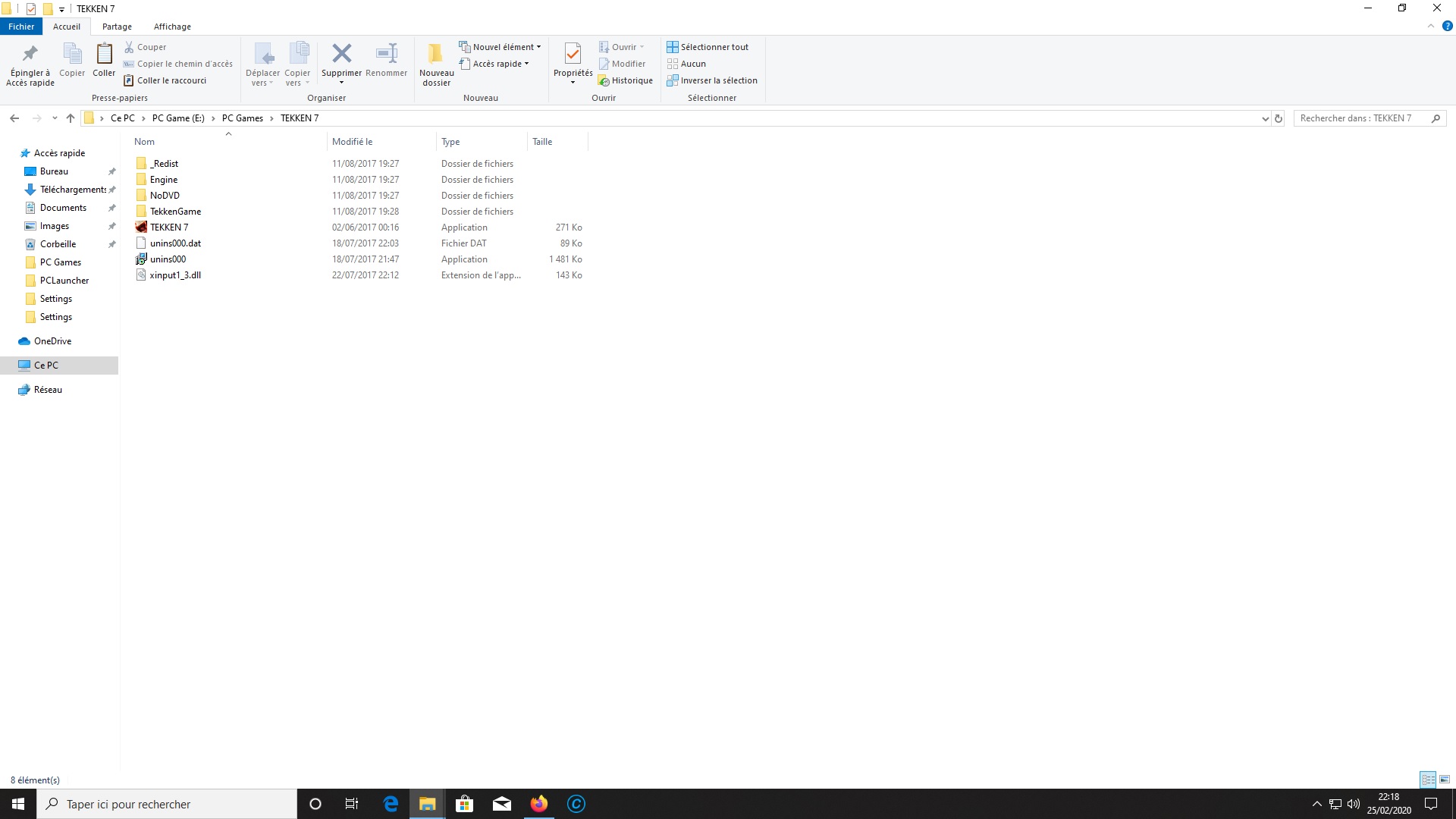 exemple : TEKKEN 7 mon EXE est a la racine du dossier, il est reconnu dans la Database