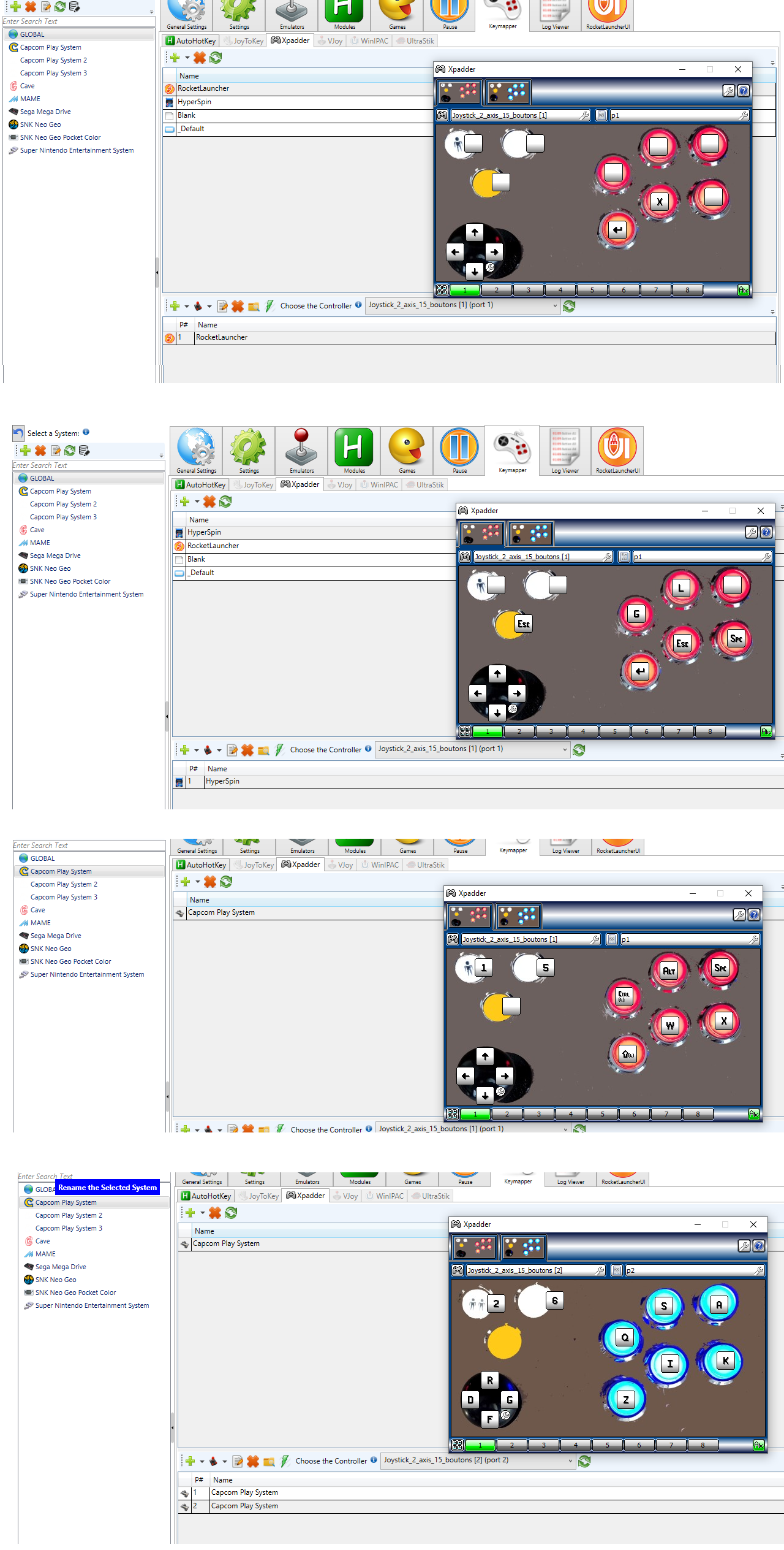 Ajout d'un profil défaut avec juste ECHAP en autoprofil et un autre avec surveillance de l'exe HyperSpin qui aura les touches que tu veux et c'est TOUT