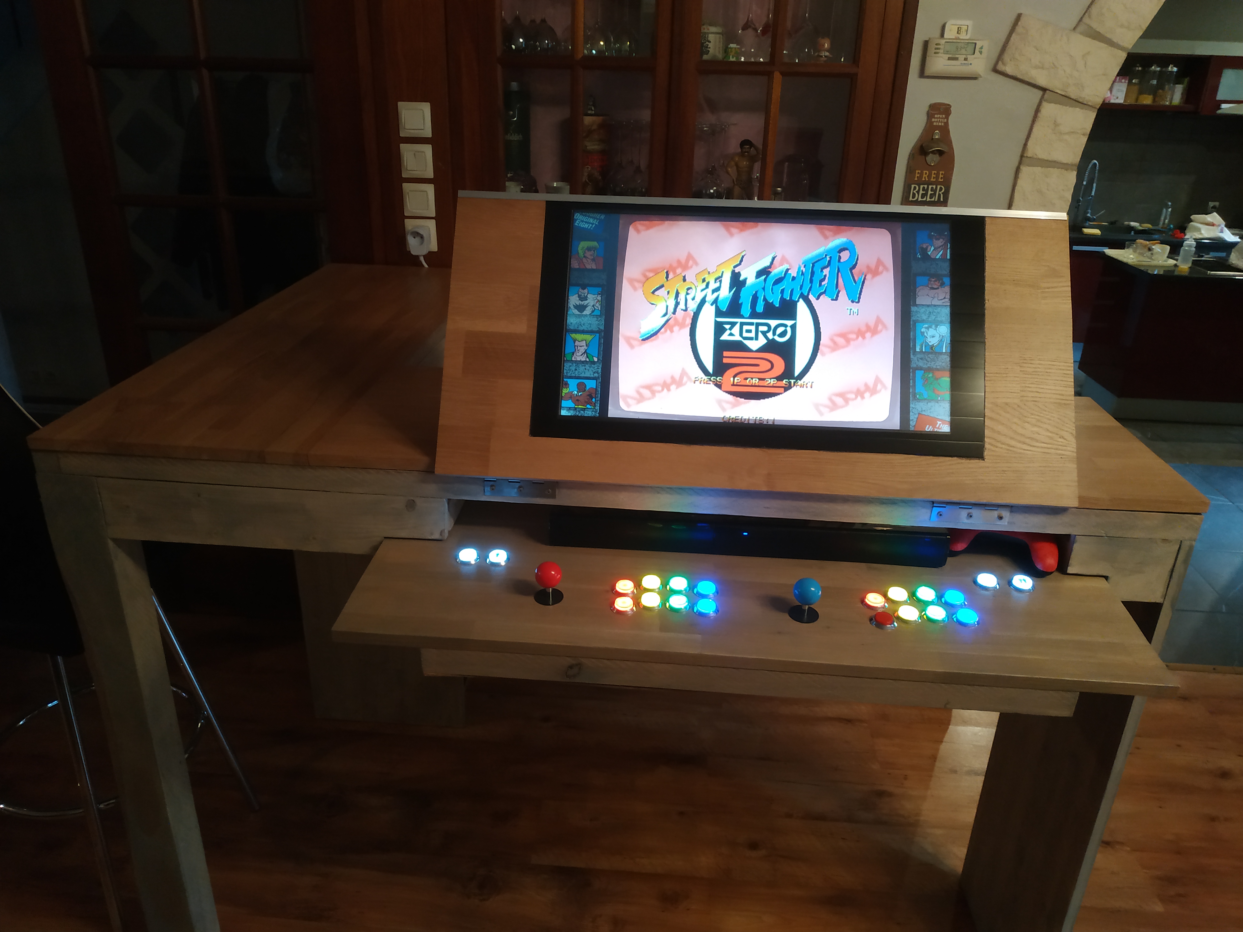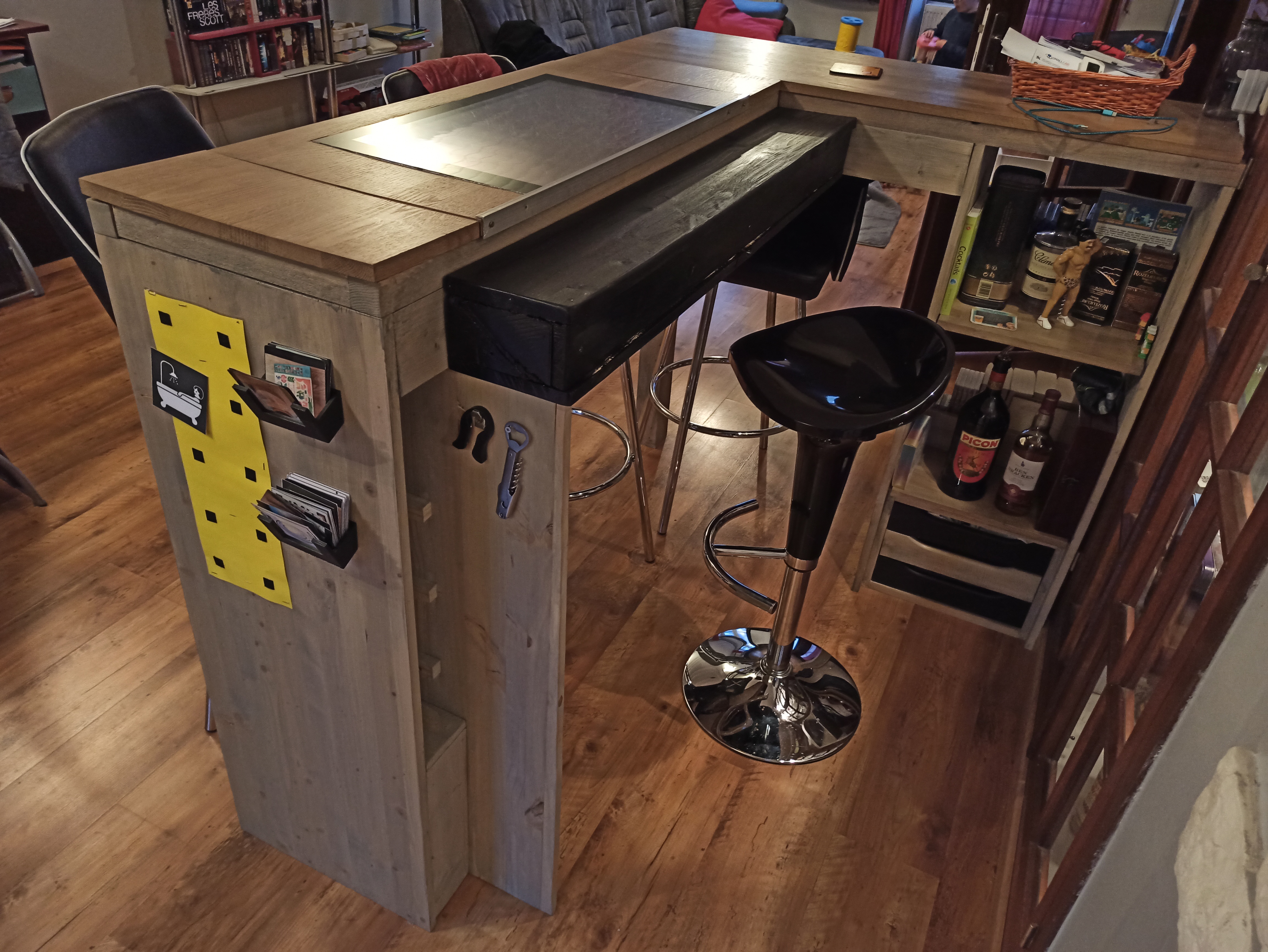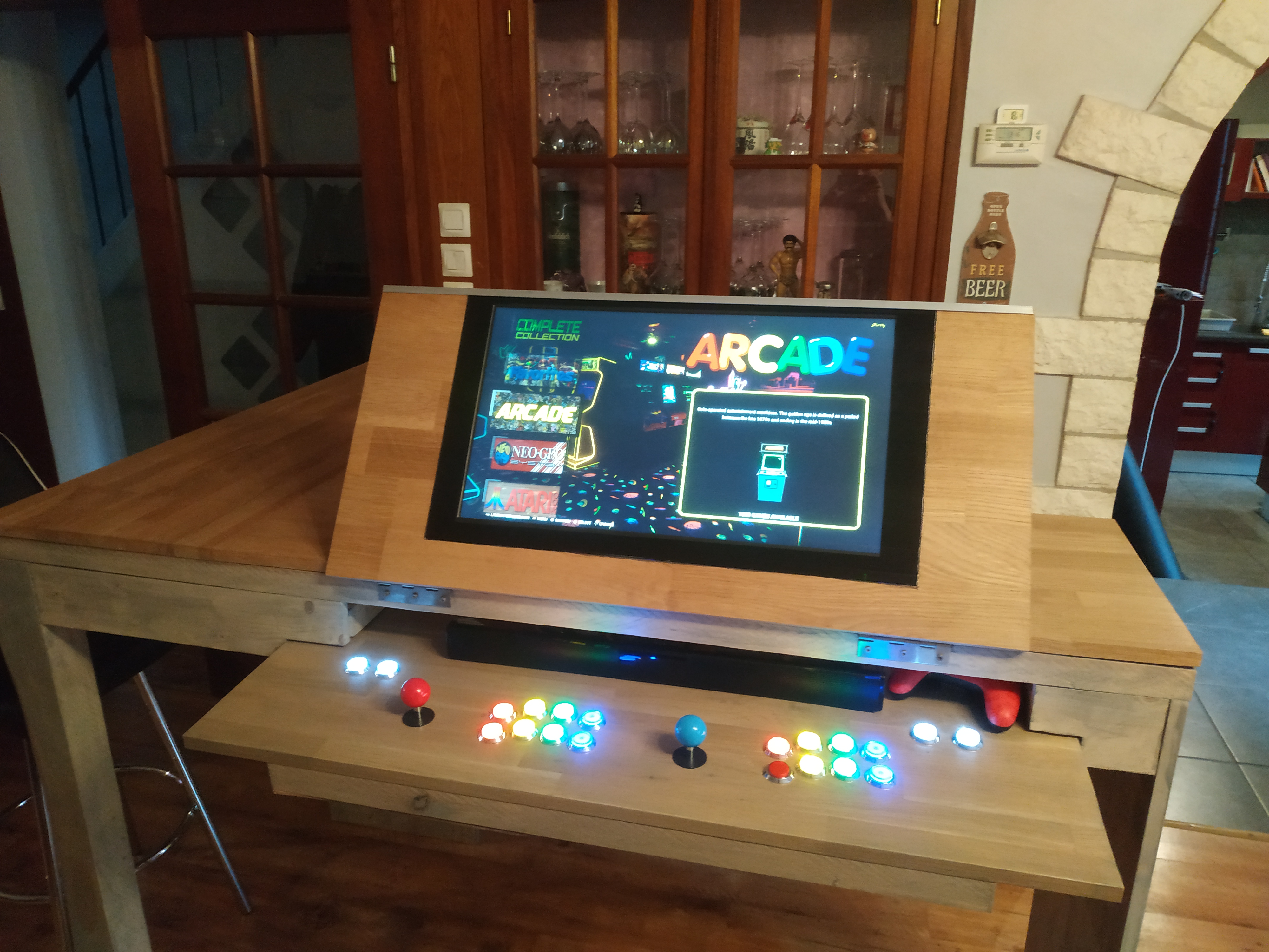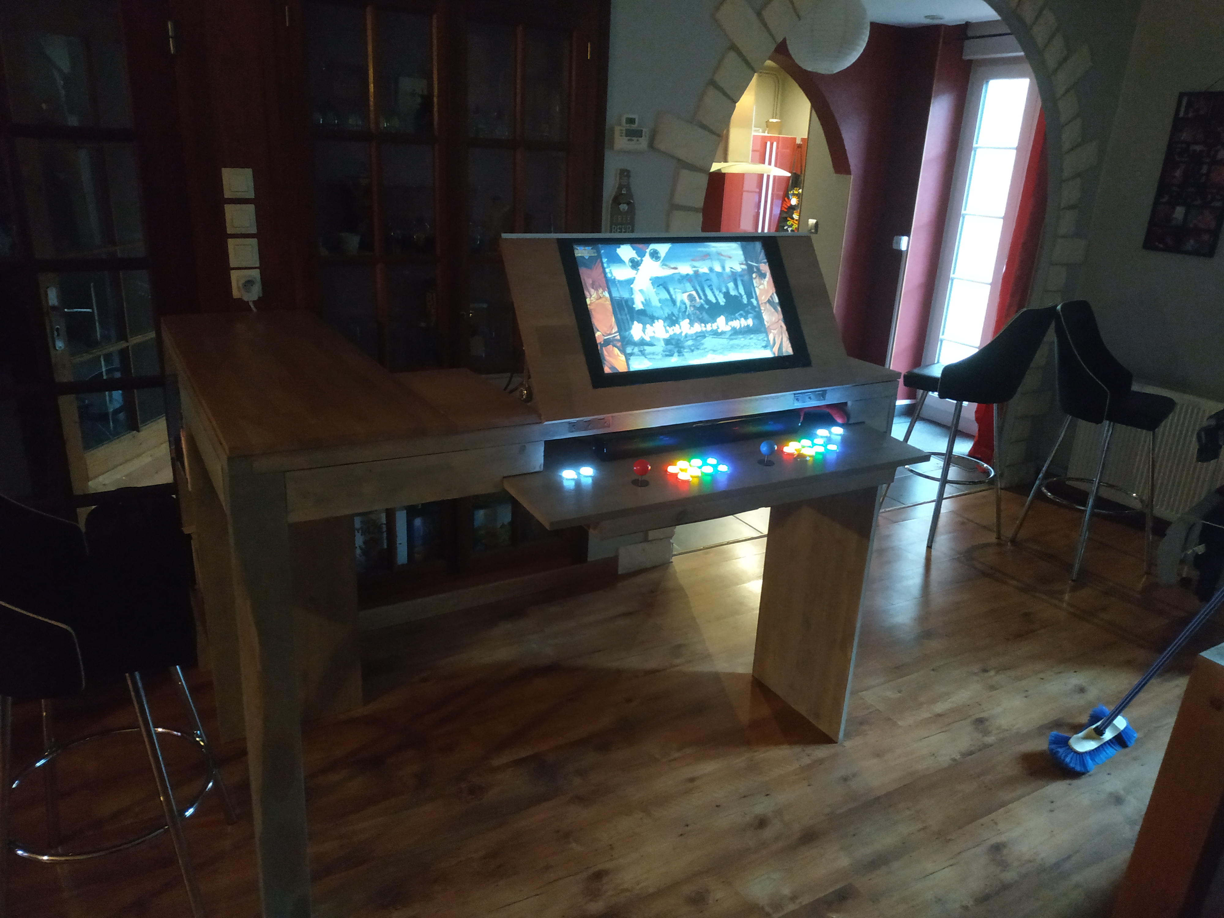 Comme on est jamais mieux servi que par soit même, j'ai voulu me lancer dans la construction mais pensant a l'esthétique de mon salon et au bien être de ma chérie, je suis partit sur un projet plutôt original. Pour réunir mes 2 passions, les jeux et la biere… voici le bar-cade. Il tourne pour l'instant grace a un raspery pi3b que j'avais déjà mais je compte l'améliorer en y integrant une nvidia shield avec hyperspin de façon a pouvoir aussi streamer certain jeux plus recent et gourmand directement depuis mon gros pc de joueur a l'étage. Je rejoin donc ce forum pour presenter fièrement ma creation et car je risque d'avoir besoin de conseils pour la suite, novice sur hyperspin et souhaitant me faire une présentation assez personnalisée.