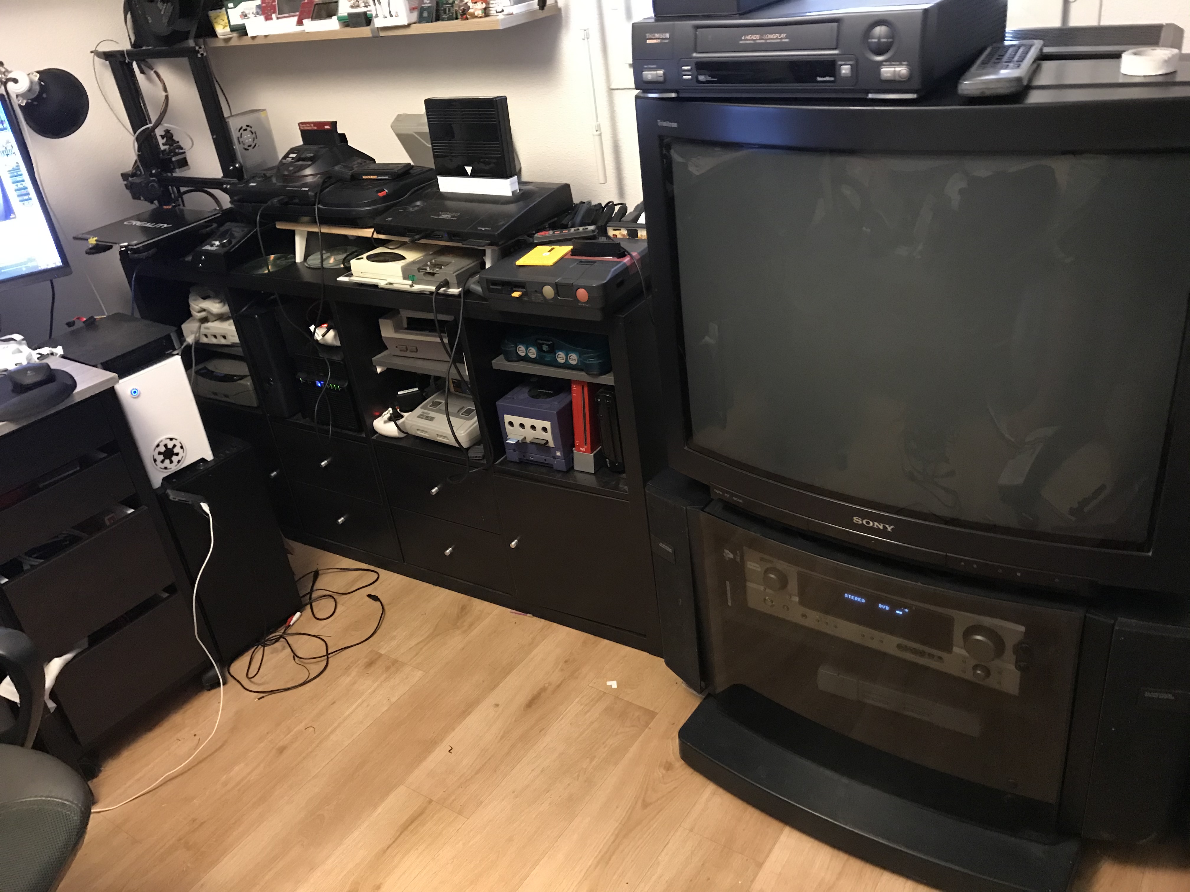 il y a la ps1 et la ps2 dans le meuble.... manque je dirais la premiere xbox en terme de console "mainstream"....