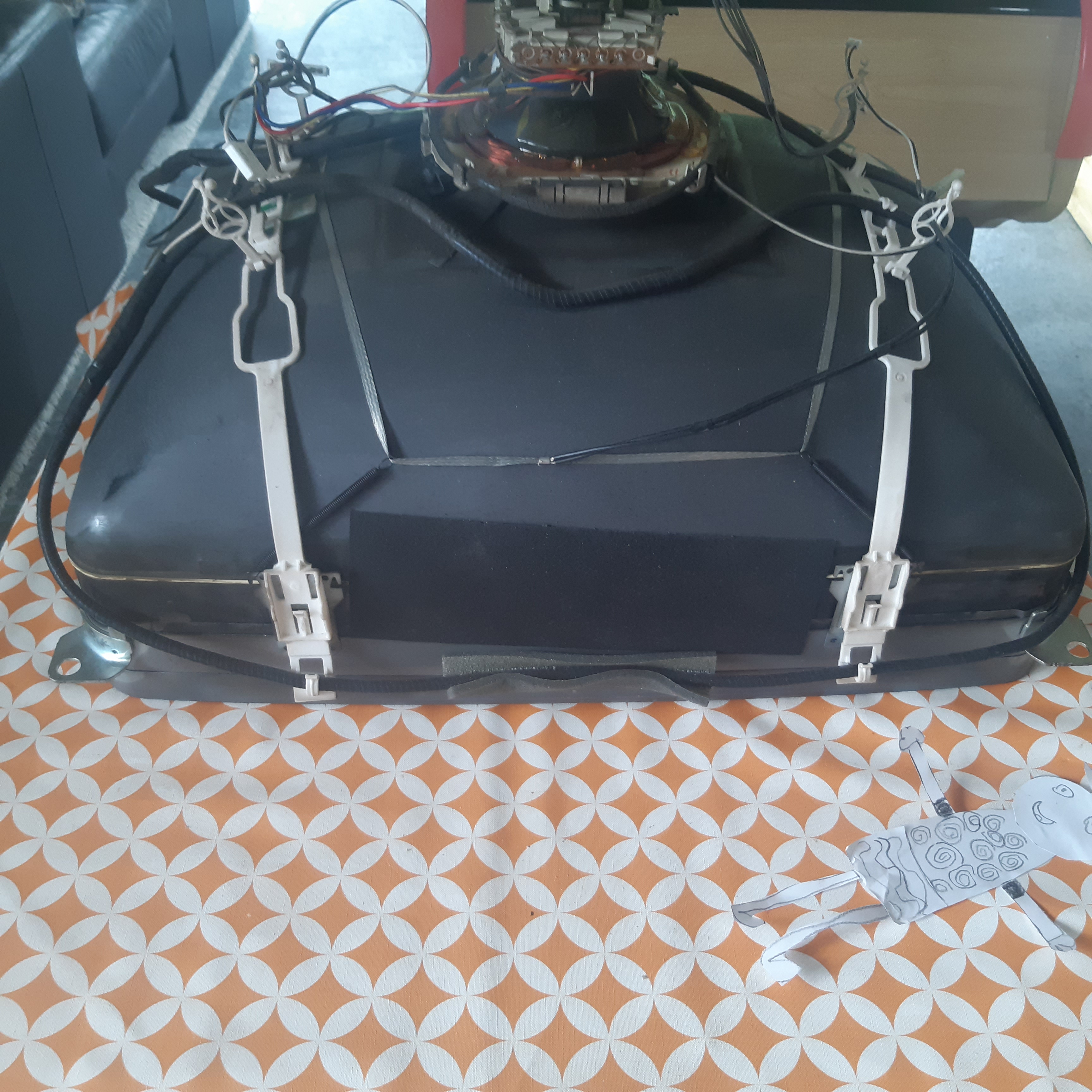 J'ai imaginé sur le papier un système de pivot sur roulement à billes car le poids de l'écran est monstrueux. 68 cm de diagonale c'est vraiment énorme.