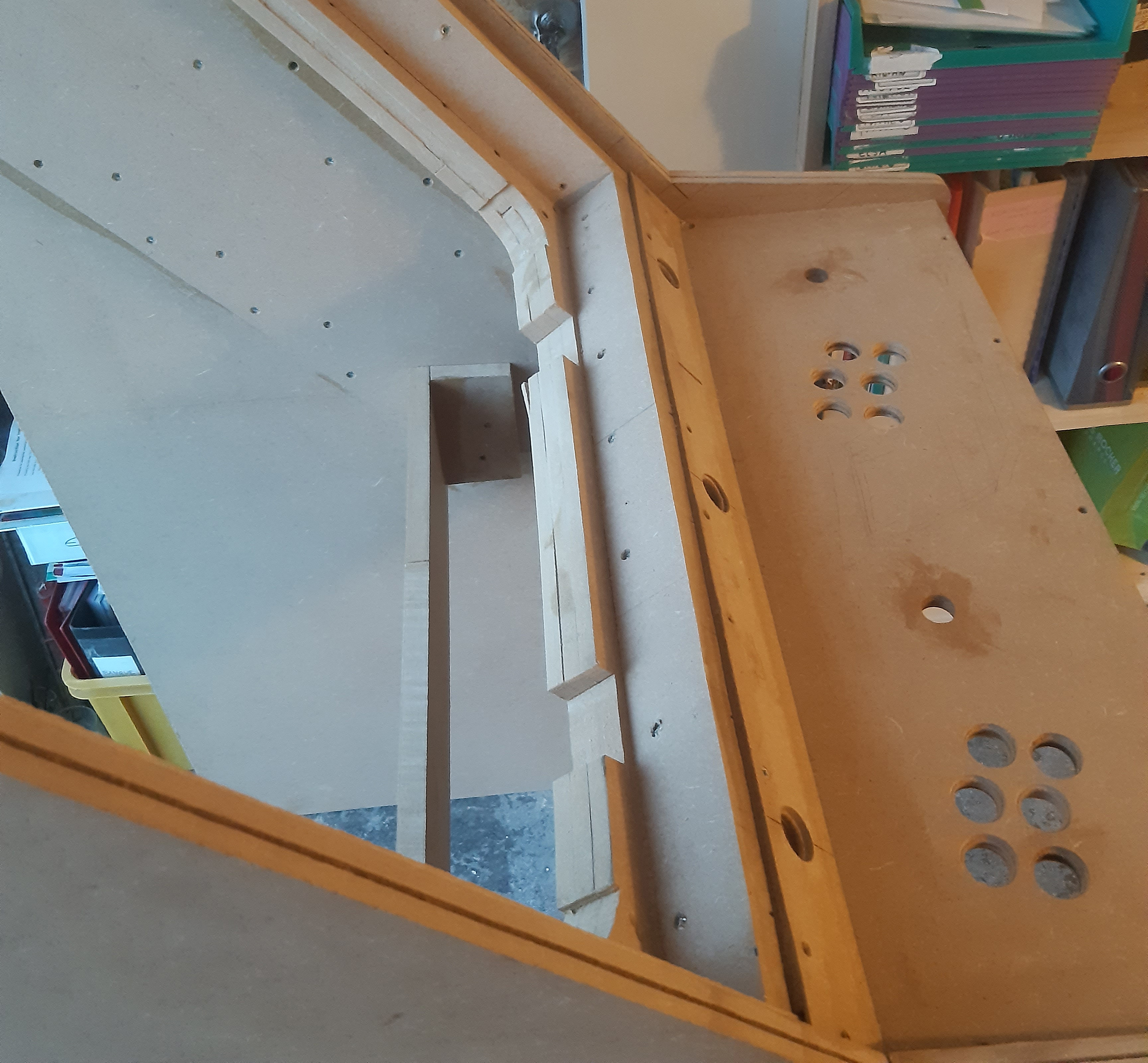 Petit détail de l'arrière du panel avec les inserts pour fixer solidement les platines des joysticks.